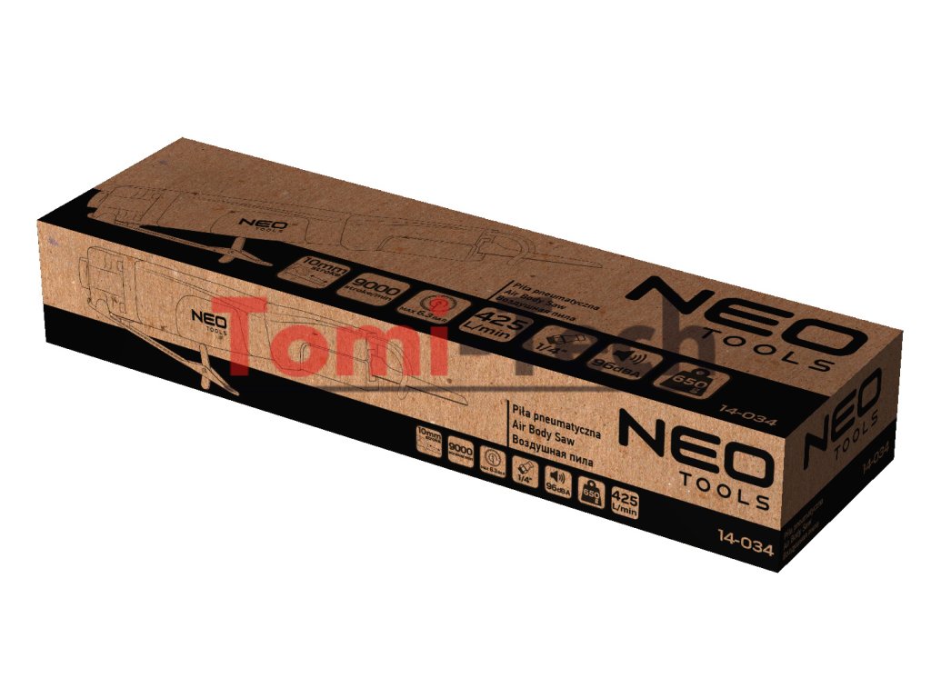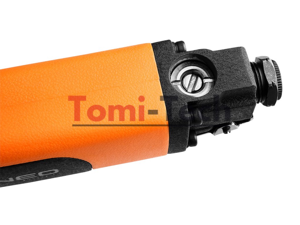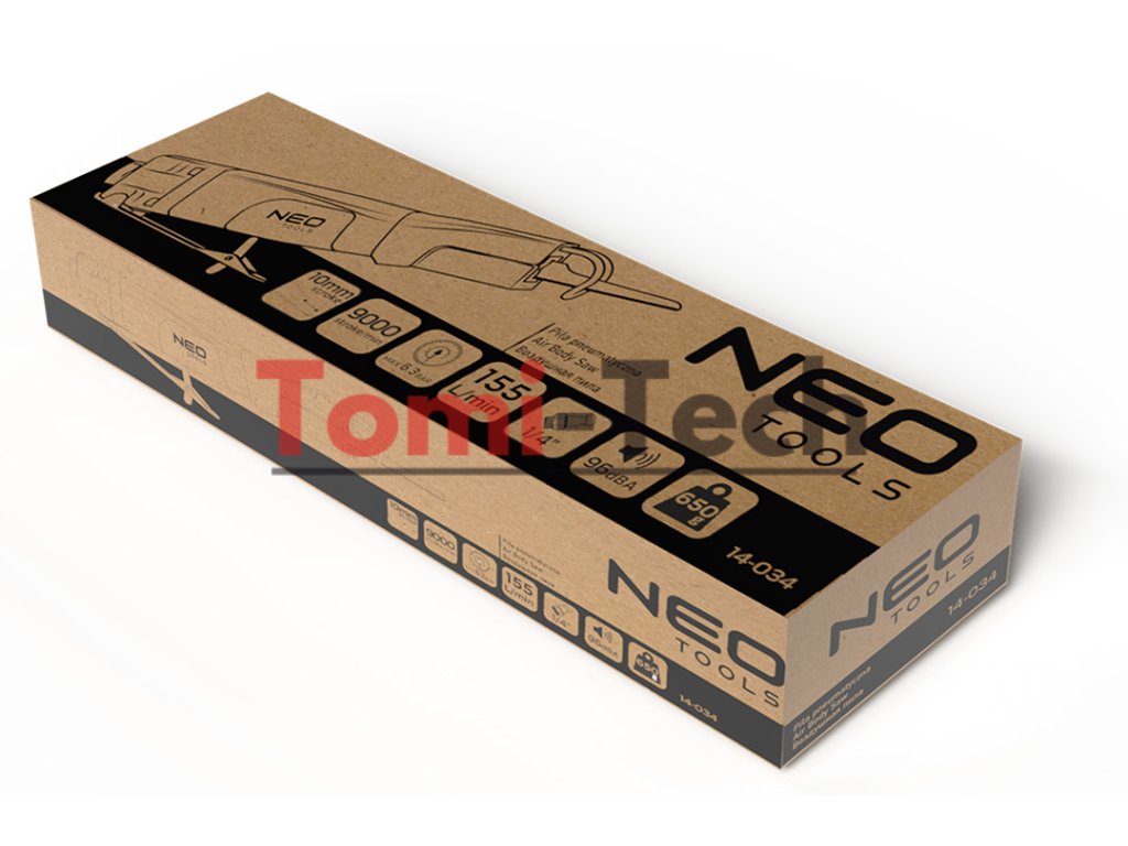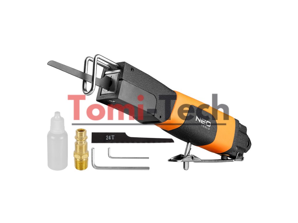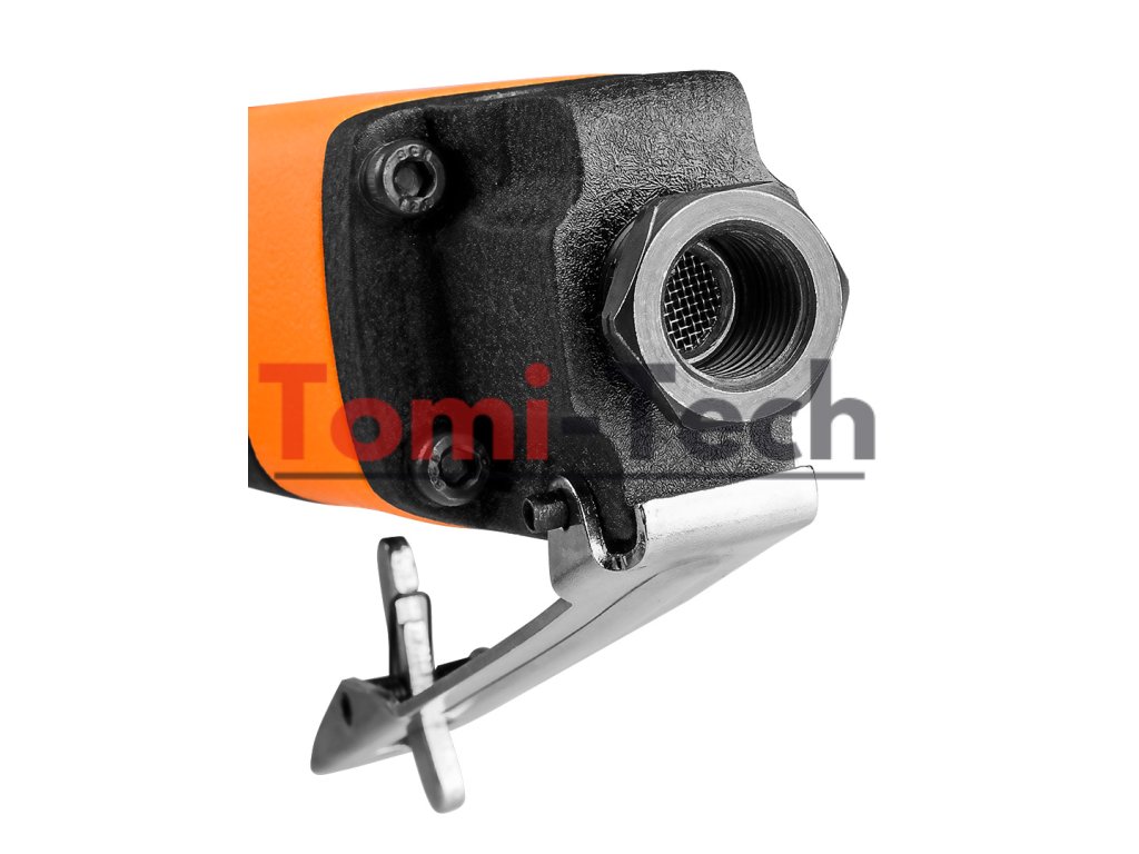 Pneumatická čelná píla, zdvih kotúča 10 mm, max. tlak 6,3 baru, priemerná spotreba vzduchu 155 l/min., 9000 zdvihov/min, 1/4" konektor, 96 dBA, hmotnosť 0,65 kg, CEDodatočné parametre
