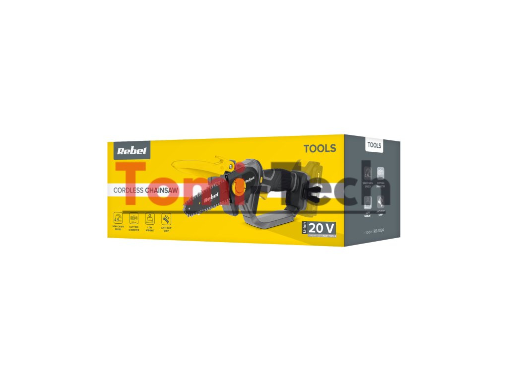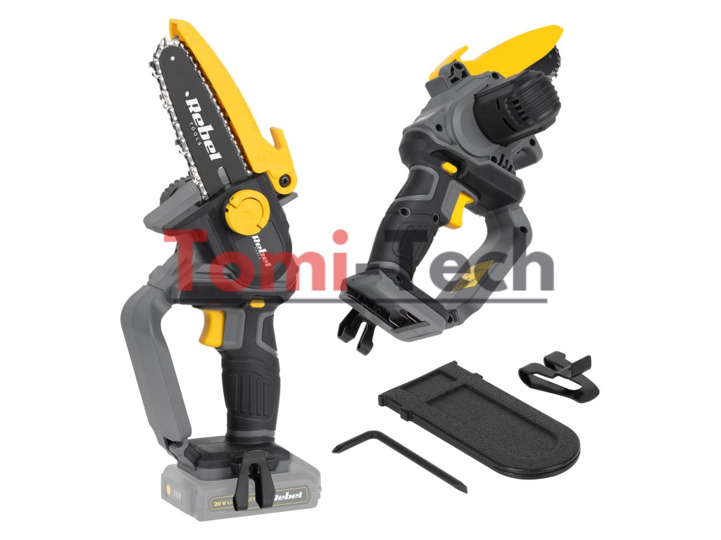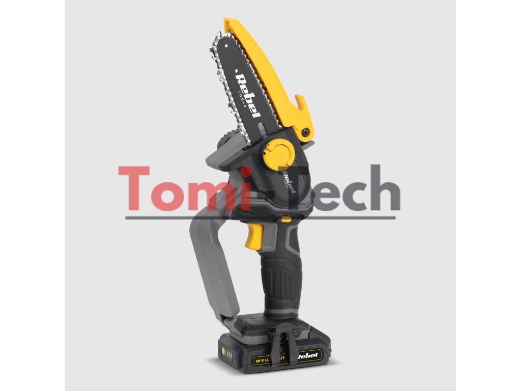 Mini akumulátorová reťazová píla Rebel je navrhnutá tak, aby poskytovala jednoduchú obsluhu pri prerezávaní stromov a konárov. Zariadenie je vybavené odolným, ale ľahkým telom, vďaka čomu sa ľahko prenáša. S týmto nástrojom sa môžete voľne pohybovať cez husté konáre a dosiahnuť presné rezy.