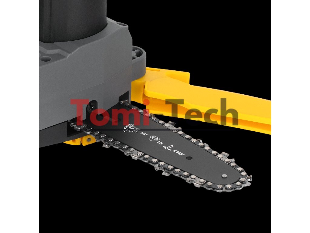 Reťaz použitá v reťazovej píle Rebel, ktorá pracuje rýchlosťou 4,9 m/s, má rozstup 6,35 mm a hrubý článok 1,1 mm, čo zaisťuje plynulý a efektívny chod. Vodiaca lišta s dĺžkou 152 mm v kombinácii s priemerom rezu 125 mm umožňuje efektívne strihanie konárov rôznych hrúbok, a to aj na ťažko dostupných miestach.