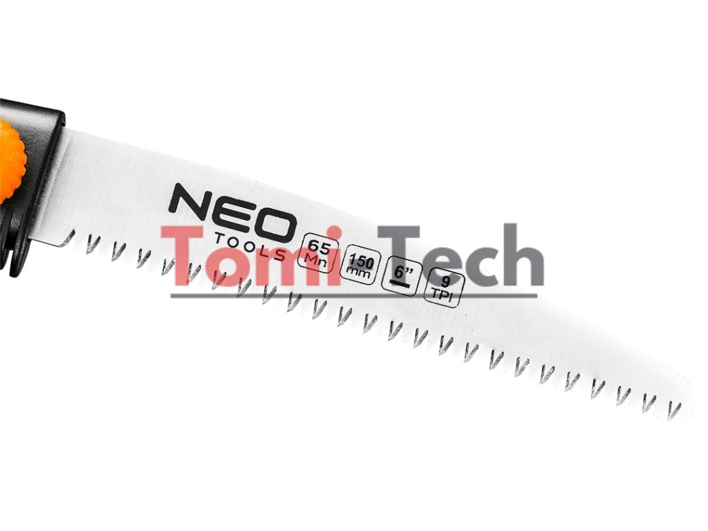 Rovná záhradná píla, dĺžka listu 150 mm, 9 TPI, oceľ 65 MN, 3D indukčne kalené zuby, list skrytý v rukoväti, zaistený skrutkou, súčasťou balenia je držiak na upevnenie na opasok.Dodatočné parametre