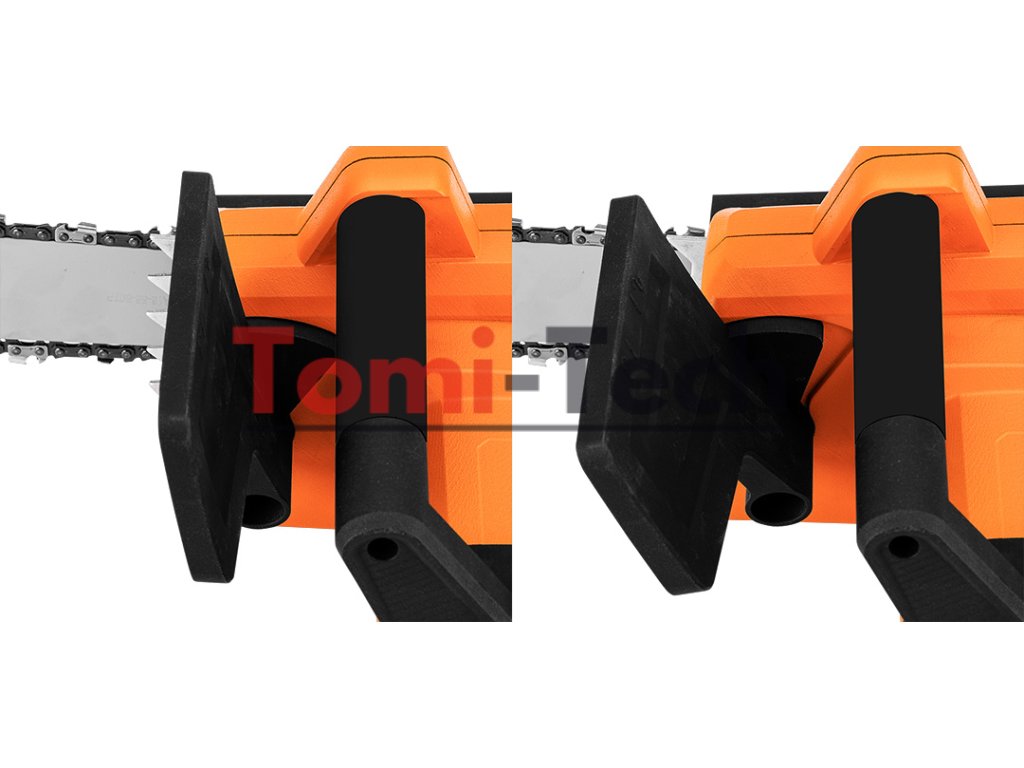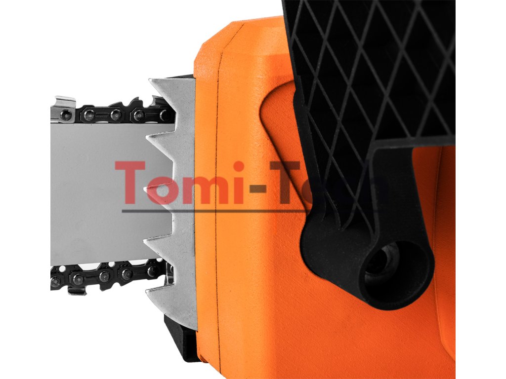 Reťazová píla s výkonom 1800 W, prerezávač píl, vodiaca lišta 405 mm/16" s redukciou spätného rázu LOW KICKBACK, pracovná dĺžka 305 mm, automatický systém mazania reťaze, typ reťaze 3/8"LP56DL, typ zubov: plný sekáč, hrúbka článkov/šírka drážky vodiacej lišty 1,27 mm/0,050'', rozstup 0,375", počet článkov 56, lineárna rýchlosť reťaze 9,3 m/s, bezpečnostná brzda, objem olejovej nádrže 160 ml, kontrolka hladiny oleja, systém napínania reťaze bez použitia náradia, zosilnený účinný motor s medeným vinutím, pogumovaný napájací kábel, bezpečnostný hák na kábel, hlavné puzdro: nylon vystužený sklenenými vláknami, hmotnosť 4,7 kg.Dodatočné parametre