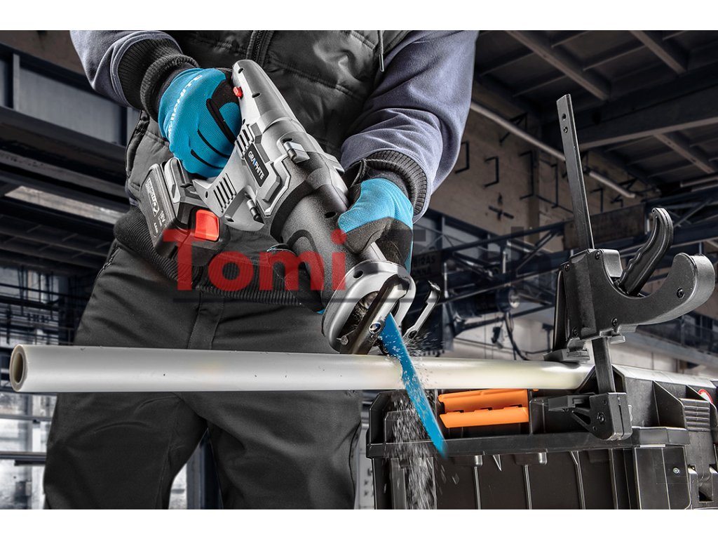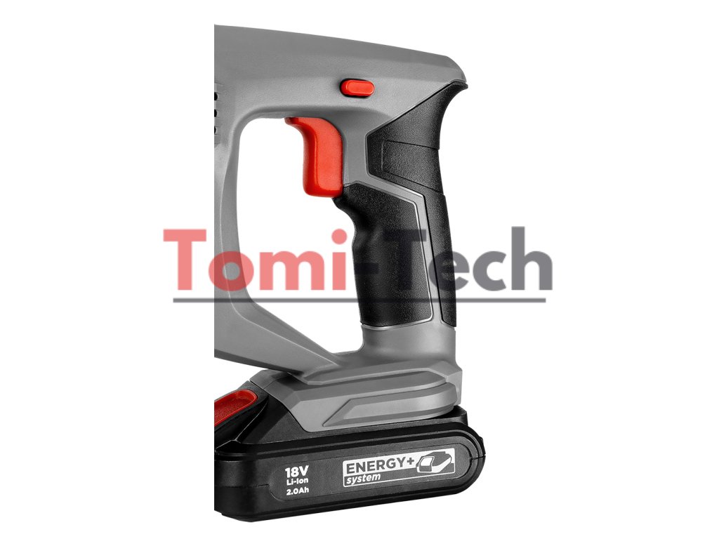 Akumulátorová chvostová píla 18 V Li-Ion, zdvih kotúča 22 mm, počet cyklov kotúča 0 – 3 000 min, hĺbka rezu v dreve/oceli 60/6 mm, hmotnosť 1,85 kg, príslušenstvo: pílový kotúč na drevo – 1 ks, kompatibilná s batériami Energy+Dodatočné parametre