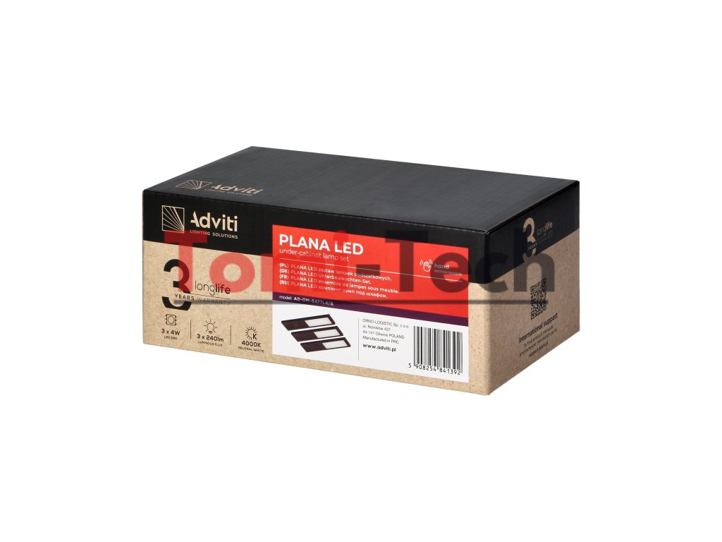 Sada 3 LED svietidiel pod skrinku PLANA, 3x4W, 3x240lm, 4000K, s bezdotykovým vypínačom, čiernaDodatočné parametre