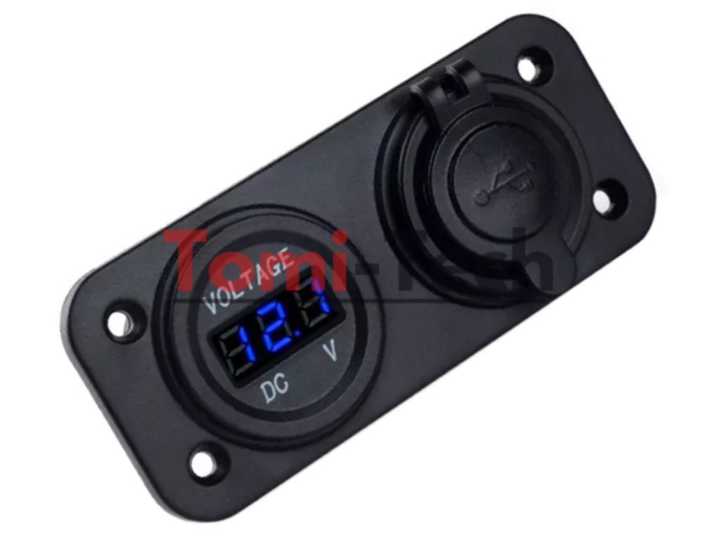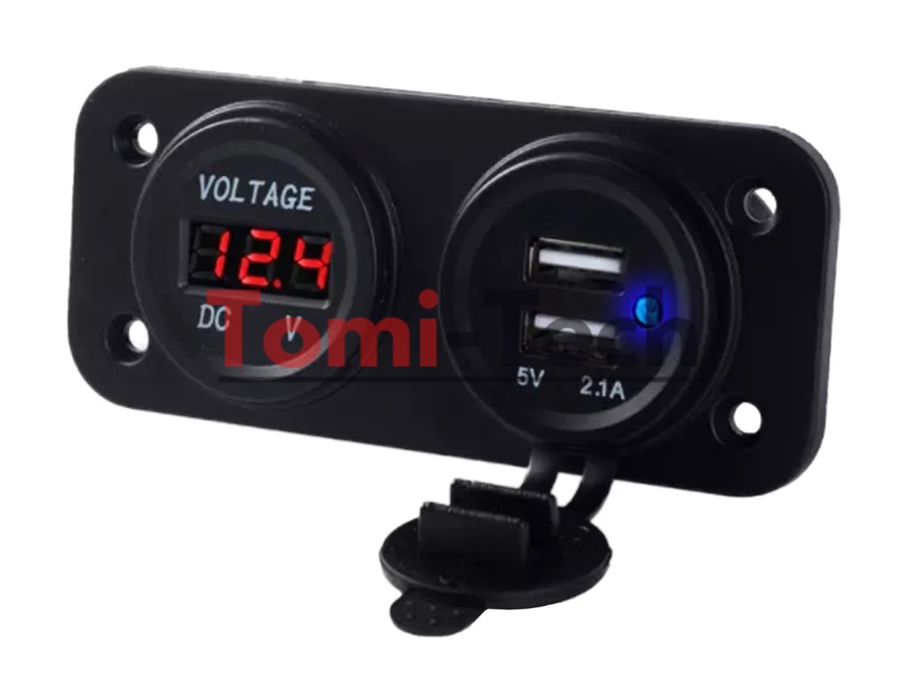 Zásuvka na montáž do auta s dvoma 5V USB portami a vstavaným voltmetrom. Ideálna na použitie v autách, motocykloch, mopedoch, štvorkolkách a skútroch – skrátka v akomkoľvek vozidle s 12V zásuvkou zapaľovača cigariet. Umožňuje vám používať dva vstavané USB porty s celkovým prúdom 3,1 A (2,1 + 1) a vstavaný voltmeter s displejom, ktorý umožňuje meranie napätia batérie v reálnom čase.