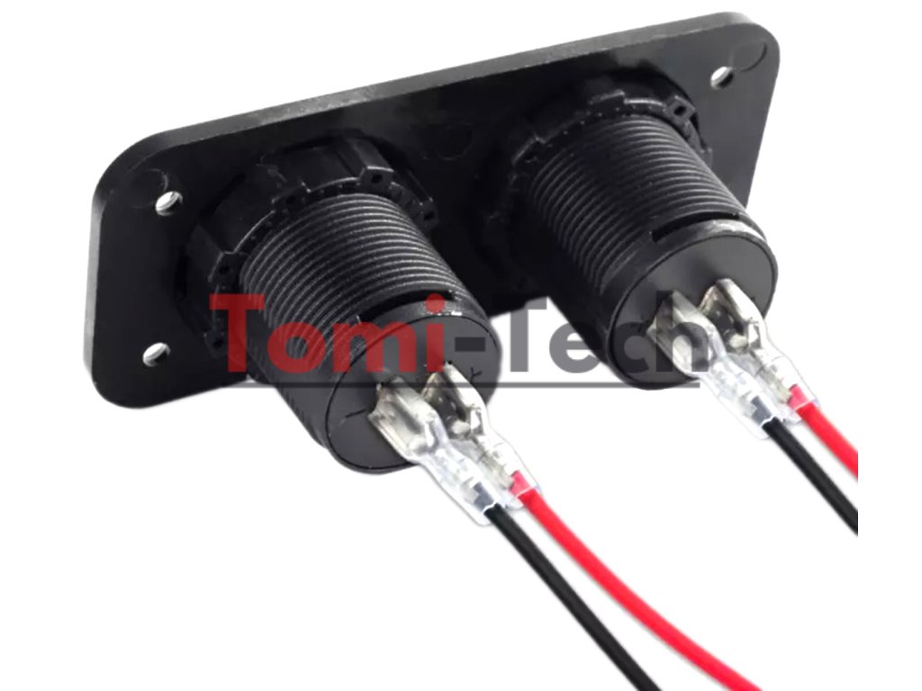 - Zásuvka pre montáž do vozidla vybavená dvoma 5V USB portami umožňuje jednoduché pripojenie elektrických zariadení k napájaniu vozidla.