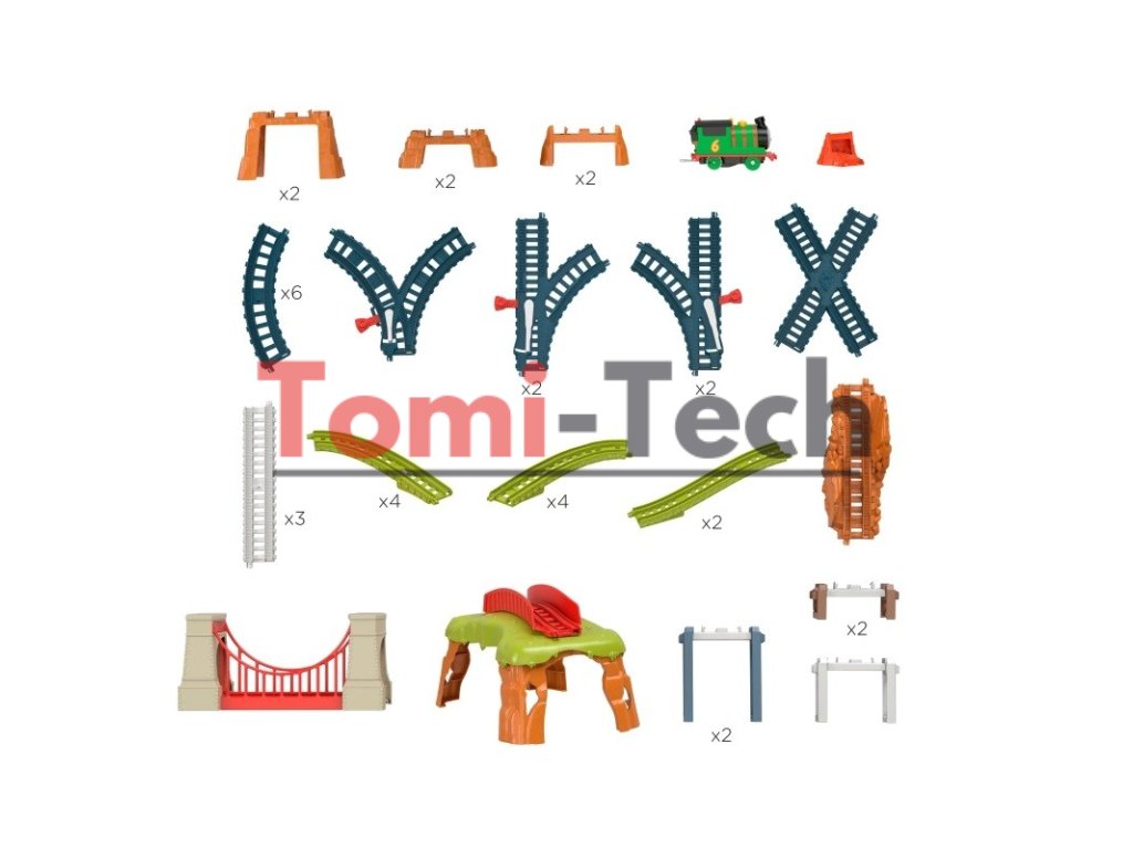 - Herná sada od Tomáša a kamarátov so 6 zostaviteľnými koľajnicovými systémami a motorizovaným vláčikom Percy