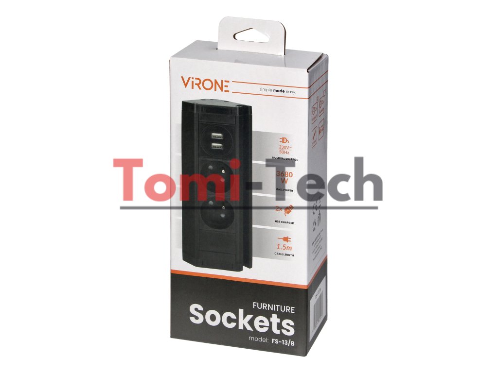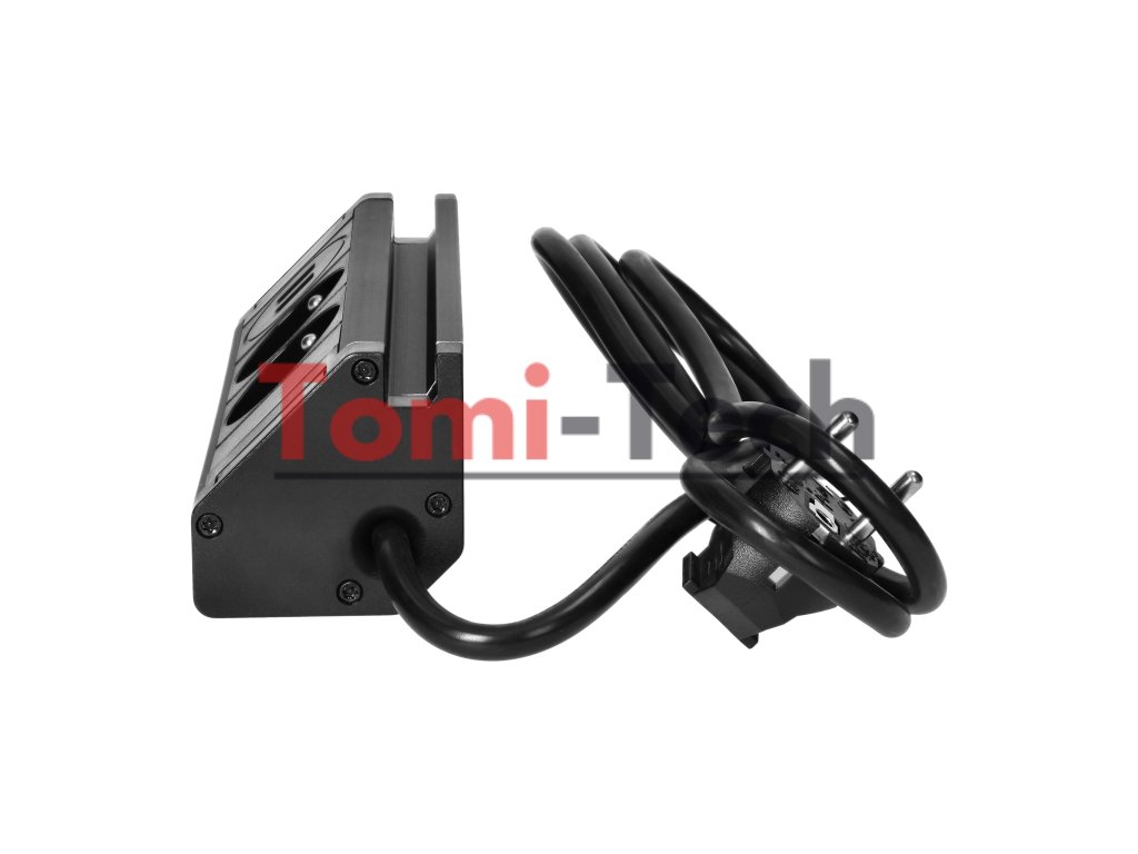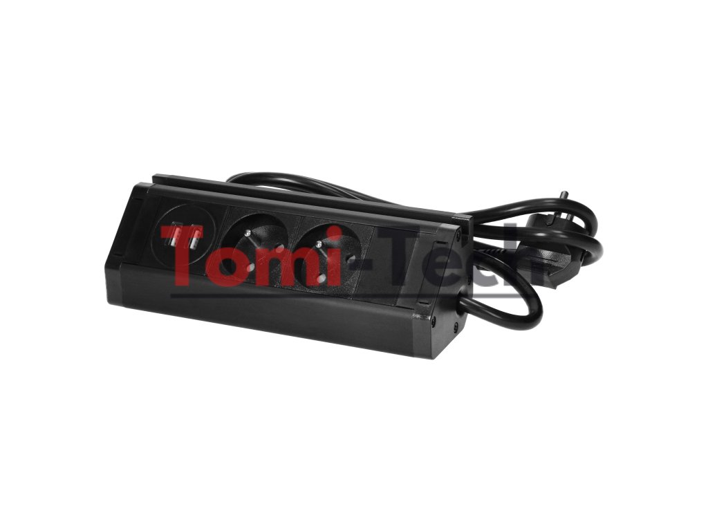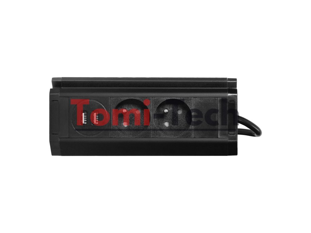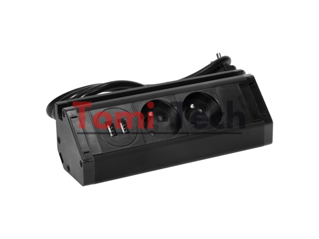Dvojitá nábytková zásuvka s USB nabíjačkou, držiakom na telefón a 1,5m káblom, 2x2P+Z, 2xUSB (typ A, 2,4A), čierna