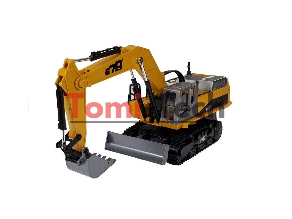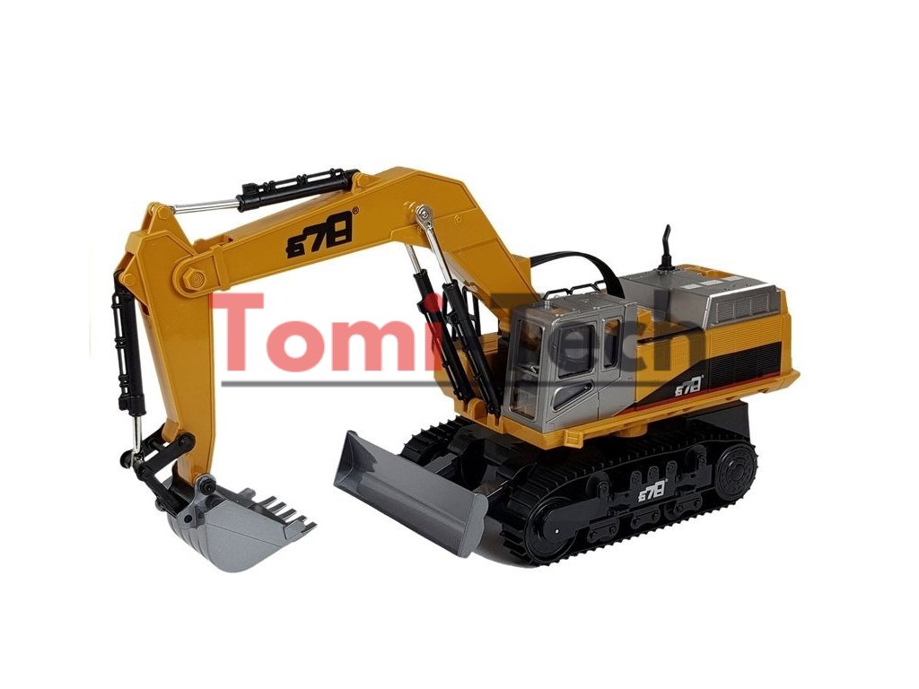 Žlté rýpadlo na diaľkové ovládanie s pohyblivým ramenomŽlté a čierne rýpadlo má mnoho výhod.Vozidlo na diaľkové ovládanie má dizajn typický pre masívne stavebné vozidlá, ako aj klasickú farebnú schému – žltá karoséria je kombinovaná s mnohými detailmi v kontrastnej čiernej farbe. Auto je osadené na gumených pásoch, ktoré si fantasticky poradia s najrôznejšími povrchmi – nielen úplne hladkými. Bager pre deti sa skladá z kabíny operátora a pohyblivého ramena, ktoré končí vedrom. Konštrukcia vozidla zohľadňuje všetky detaily plnohodnotných vozidiel známych zo stavieb – vidieť sú ochranné bariéry a výfuk.