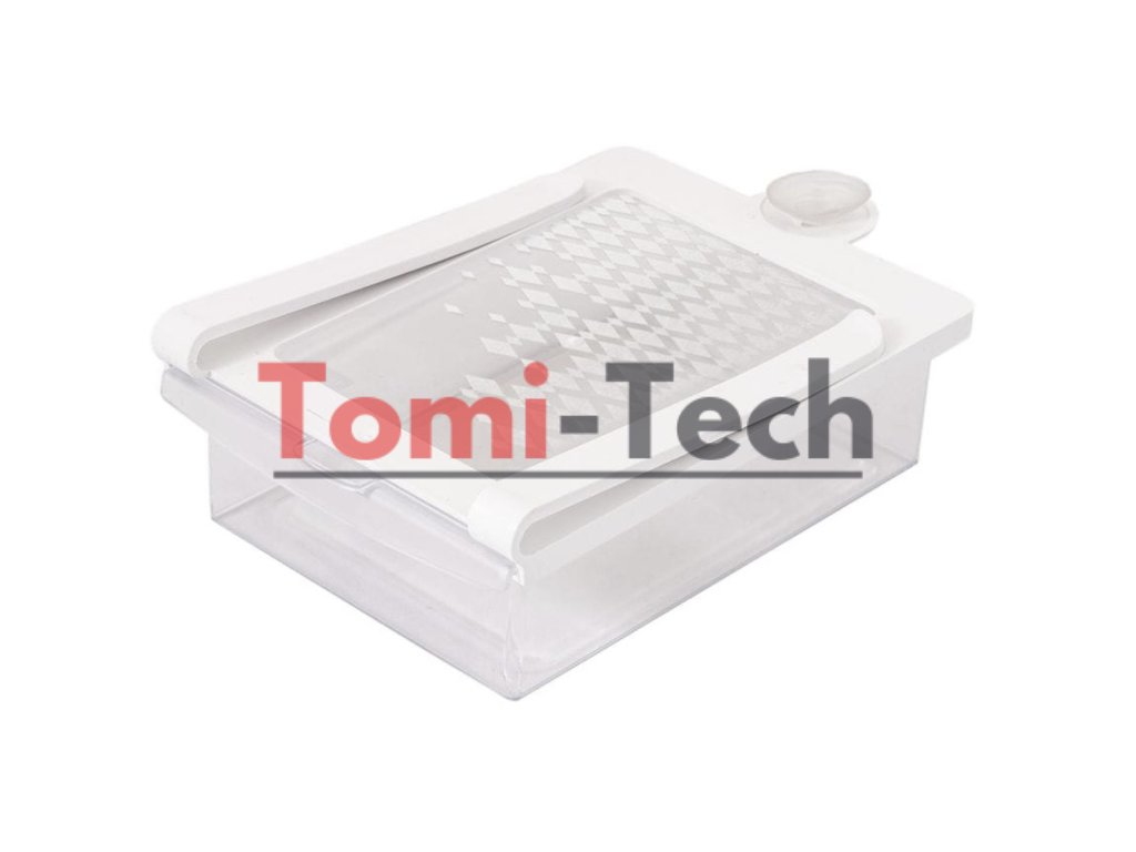 Výrobok je vyrobený z priehľadného materiálu najvyššej kvality, pozostáva z pohyblivého krytu, dna a vodiacej lišty, ktorú je možné zavesiť na policu v chladničke. Ideálne na uskladnenie produktov, ktoré potrebujete okamžite.