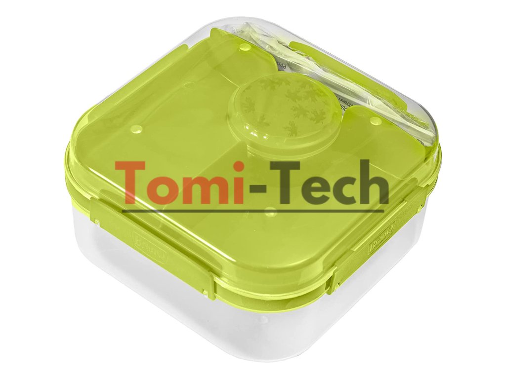 LIDO LUNCH BOX je viacvrstvový obedár do školy alebo do práce. Sada je rozdelená na tri časti. Spodná časť krabice pojme ingrediencie na šalát. Vrchnák sa dá použiť ako tanier. Stredná časť je rozdelená na časti na uloženie chleba. Sada obsahuje biologicky rozložiteľný príbor a skrutkovaciu nádobu na olivový olej alebo dresing, pražené semienka atď., ktorú môžete použiť tesne pred jedlom.