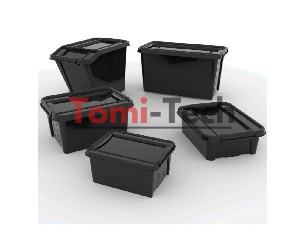 Objemy sa pohybujú od 14 do 70 litrov, vďaka čomu je Pro Box RECYCLE vhodný pre rôzne potreby skladovania. Všetky boxy sú stohovateľné pre optimálny úložný priestor a priehlbiny a drážky vo veku zabraňujú ich posunutiu pri stohovaní.