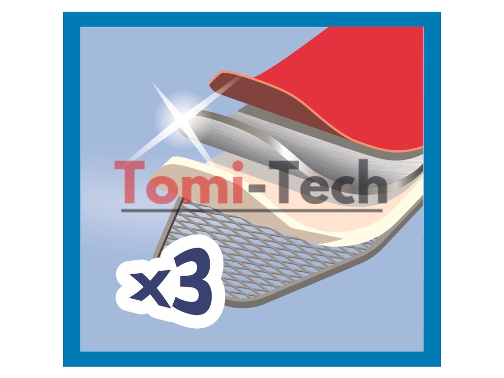 Poťah Comfort Plus má tri vrstvy, ktoré zaisťujú maximálne pohodlie pri žehlení: 1) 100 % bavlna, 2) špongia, 3) polyester