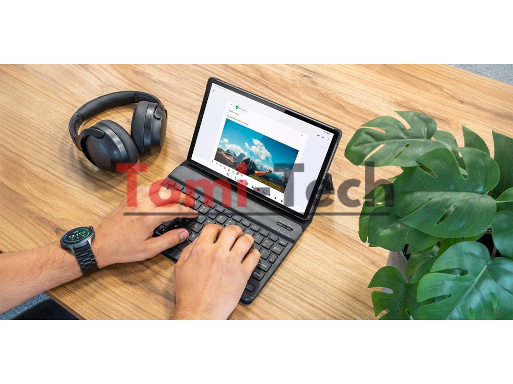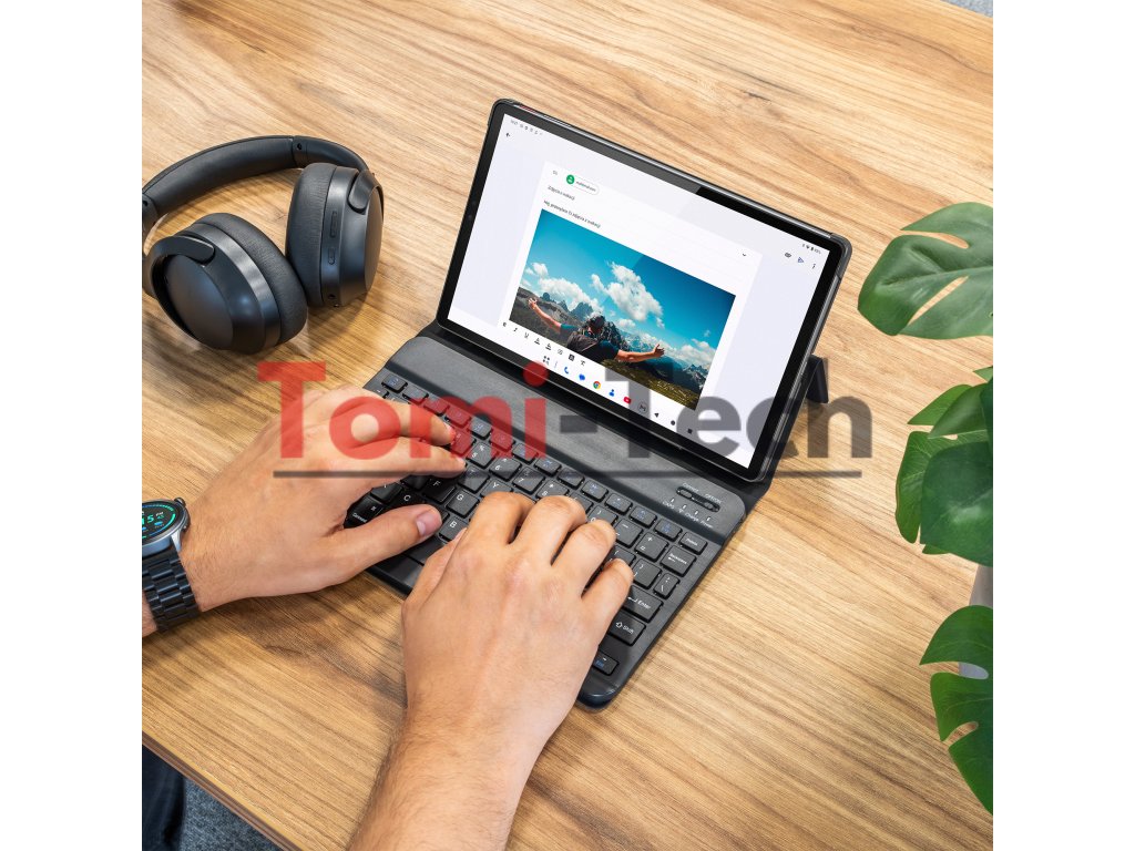 Integrovaná klávesnica sa pripája k tabletu pomocou technológie Bluetooth 5.0 a ponúka stabilné pripojenie až do vzdialenosti 10 metrov. Magnetické uchytenie umožňuje v prípade potreby klávesnicu jednoducho odpojiť, čím poskytuje flexibilitu pri používaní. Je to perfektný nástroj na písanie e-mailov, poznámok alebo dokumentov.
