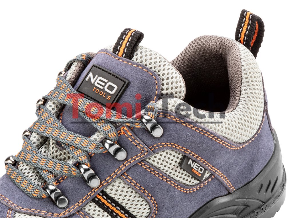 Pracovná obuv, semišová, veľkosť 44, protišmyková podrážka s tlmiacim systémom, odolná voči oderu, olejom, benzínu a iným organickým rozpúšťadlám, oceľová špička odoláva nárazu do 200 J, oceľová vložka proti prepichnutiu, antistatická vložka, kovové pútka, priedušný materiál, obuv vyrobená v kategórii S1P SRC (SRC - odolnosť proti pošmyknutiu na keramickom povrchu potiahnutom roztokom laurylsulfátu sodného (SLS) a na oceľovom povrchu potiahnutom glycerolom), certifikát CEDodatočné parametre