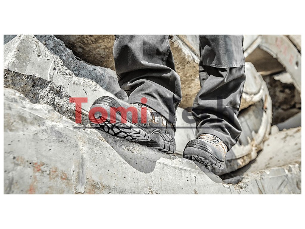 Semišová pracovná obuv, veľkosť 46, protišmyková podrážka s tlmiacim systémom, odolná voči oderu, olejom, benzínu a iným organickým rozpúšťadlám, oceľová špička odoláva nárazu do 200 J, oceľová vložka proti prepichnutiu, antistatická vložka, kovové pútka, priedušný materiál, obuv vyrobená v kategórii S1P SRC (SRC - odolnosť proti pošmyknutiu na keramickom povrchu potiahnutom roztokom laurylsulfátu sodného (SLS) a na oceľovom povrchu potiahnutom glycerolom), certifikát CEDodatočné parametre