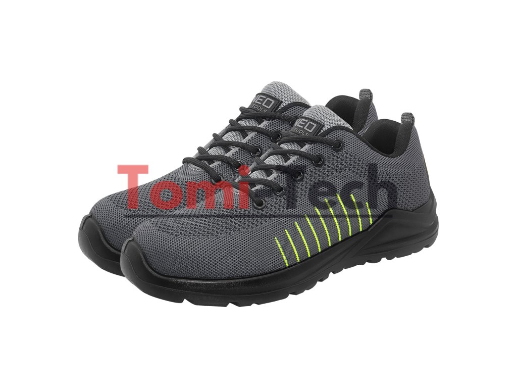 Pracovná obuv S1 FO, oceľová špička, zvršok: sieťovaný úplet, podšívka: sieťovaný úplet, podrážka: PU/PU, stielka: EVA pena, kovová špička, obuv vyrobená v kategórii S1 FO, špička poskytujúca ochranu pred nárazmi s energiou 200 J, odolnosť voči olejom, benzínu a iným organickým rozpúšťadlám, protisklzové vlastnosti, antistatické vlastnosti, pletený zvršok je tkaný z jednej nite, čo zaisťuje ľahkú konštrukciu a veľmi dobré prispôsobenie sa nohe, certifikát CE podľa normy EN ISO 20345, veľkosť 47Dodatočné parametre