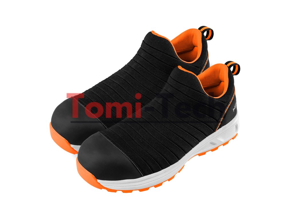 Pracovná obuv S1P SRC, kompozitná špička, bez kovu, nazúvacia, sieťovaný úplet, dvojmateriálová podrážka z EVA a gumy, kompozitná špička, kevlarová vložka proti prenikaniu, obuv vyrobená v kategórii S1P SRC (SRC - odolnosť proti pošmyknutiu na keramických povrchoch potiahnutých roztokom laurylsulfátu sodného (SLS) a na oceľových povrchoch potiahnutých glycerolom), bez kovu, protišmyková podrážka s tlmiacim systémom, odolná voči oderu, olejom, benzínu a iným organickým rozpúšťadlám, uzavretá päta, antistatická stielka, nazúvací model, ľahká a priedušná obuv, atraktívna, veľkosť 44Dodatočné parametre