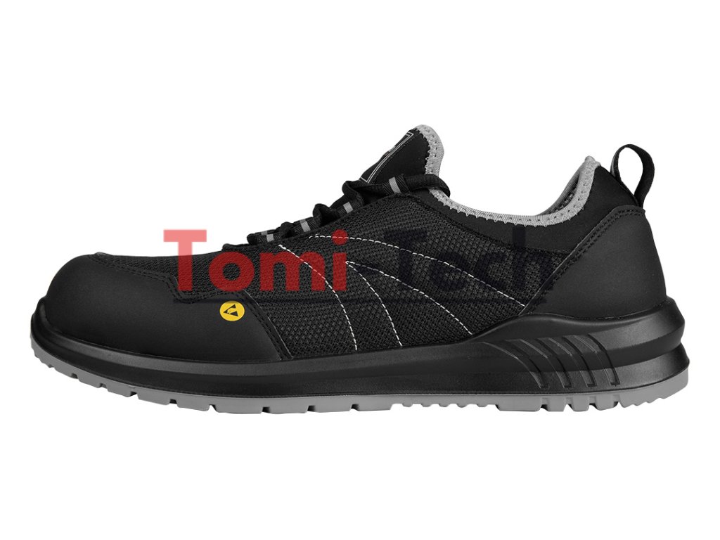 S1PL SR, pracovná obuv ESD, kompozitná špička, kevlarová vložka, zvršok: sieťovina a mikrovlákno, podšívka: sieťovaný úplet, podrážka: PU/PU, stielka: pena EVA, kompozitná špička a kevlarová vložka proti prepichnutiu, antielektrostatická obuv s úzkym rozsahom elektrického odporu od 0,75 M do 35 M, rozptyľuje elektrické náboje, obuv vyrobená v kategórii S1PL SR (SR - odolnosť proti pošmyknutiu na keramickom povrchu potiahnutom roztokom laurylsulfátu sodného (SLS) a na oceľovom povrchu potiahnutom glycerolom), špička poskytujúca ochranu pred nárazmi s energiou 200 J, odolnosť proti prepichnutiu, uzavretá päta, odolnosť voči olejom, benzínu a iným organickým rozpúšťadlám, antielektrostatické vlastnosti, absorpcia energie v pätovej časti, flexibilný zvršok sa dobre prispôsobí chodidlu, priedušnosť, určená pre priemysel: elektronický, počítačový, chemický, automobilový, farmaceutický, optický, potravinársky, letecký, petrochemický; certifikácia CE, veľkosť 41Dodatočné parametre
