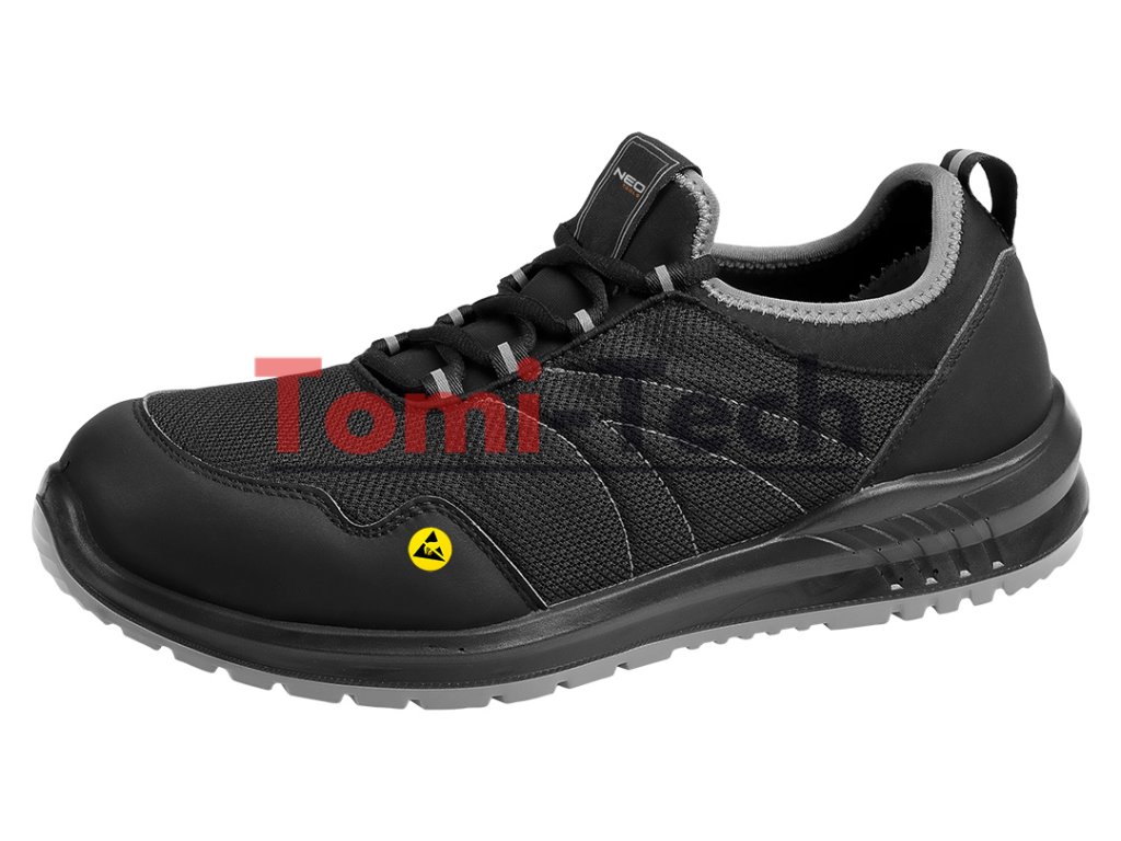 S1PL SR, pracovná obuv ESD, kompozitná špička, kevlarová vložka, zvršok: sieťovina a mikrovlákno, podšívka: sieťovaný úplet, podrážka: PU/PU, stielka: EVA pena, kompozitná špička a kevlarová vložka proti prepichnutiu, antielektrostatická obuv s úzkym rozsahom elektrického odporu od 0,75M do 35M, rozptyľuje elektrické náboje, obuv vyrobená v kategórii S1PL SR (SR - odolnosť proti pošmyknutiu na keramickom povrchu potiahnutom roztokom laurylsulfátu sodného (SLS) a na oceľovom povrchu potiahnutom glycerolom), špička poskytujúca ochranu pred nárazmi s energiou 200J, odolnosť proti prepichnutiu, uzavretá päta, odolnosť voči olejom, benzínu a iným organickým rozpúšťadlám, antielektrostatické vlastnosti, absorpcia energie v pätovej časti, flexibilný zvršok sa dobre prispôsobí chodidlu, priedušnosť, určená pre priemysel: elektronický, počítačový, chemický, automobilový, farmaceutický, optický, potravinársky, letecký, petrochemický; certifikácia CE, veľkosť 42Dodatočné parametre