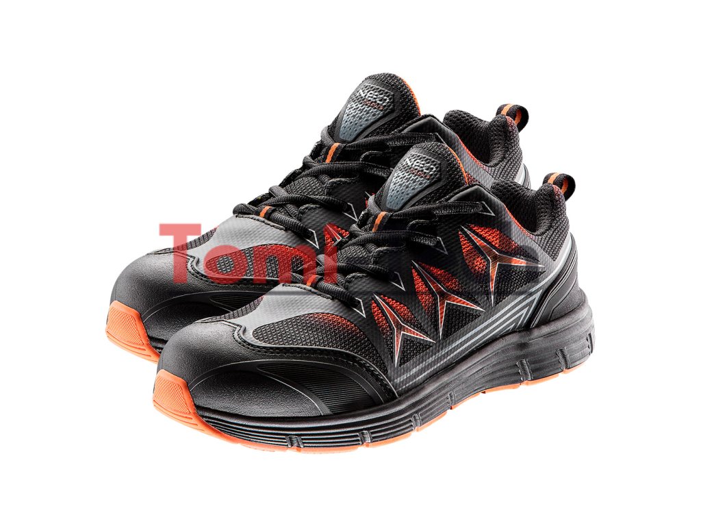 Profesionálna obuv O1 SR FO, bez kovu, veľkosť 43, zvršok z plastu, vnútorná sieťovaná podšívka, podrážka z gumy a vstrekovanej EVA peny, antistatická stielka, uzavretá päta, absorpcia energie v pätovej časti, FO - odolnosť podrážky voči olejom, benzínu a iným organickým rozpúšťadlám (uhľovodíky), spĺňa požiadavky normy EN ISO 20347:2012 SR FO O1, (SR - odolnosť proti pošmyknutiu na keramickom povrchu pokrytom roztokom laurylsulfátu sodného (SLS) a na oceľovom povrchu pokrytom glycerolom), certifikát CEDodatočné parametre