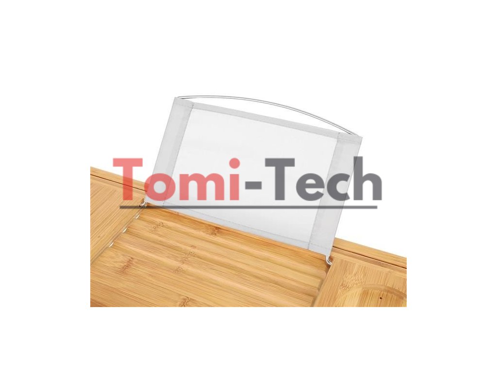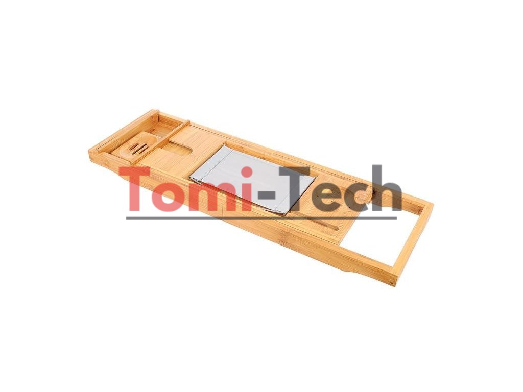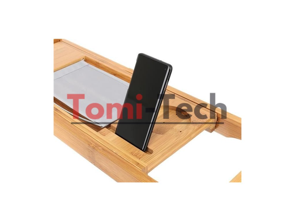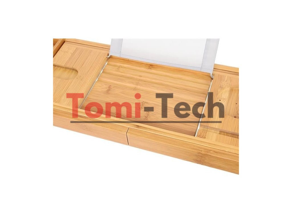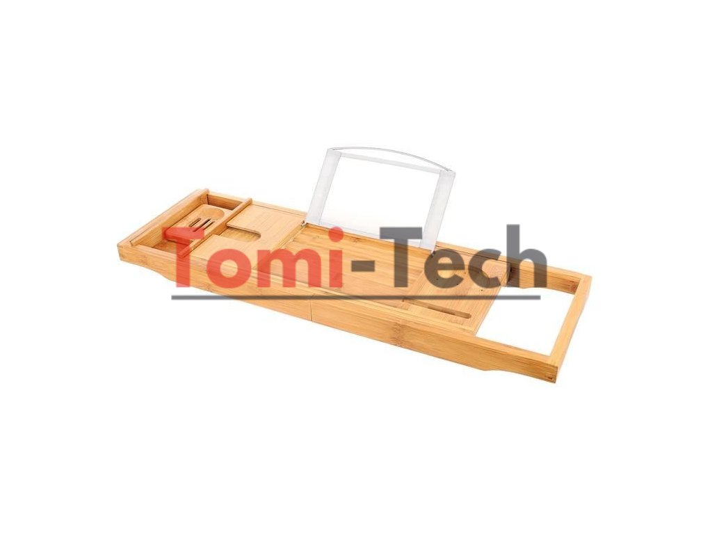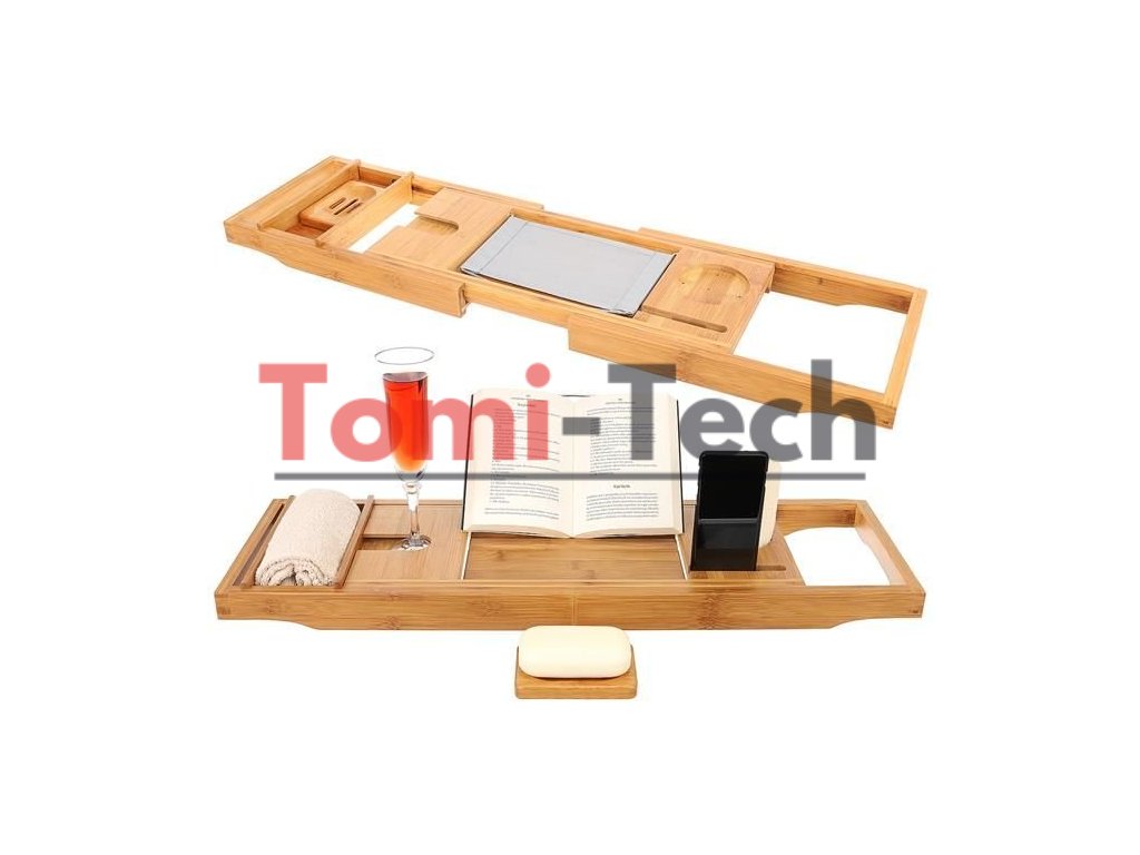 - FUNKČNÁ? Polička bola navrhnutá tak, aby plne zaručovala pohodlie a funkčnosť počas kúpania. Má kovový držiak na tablet/knihu s 3 nastaviteľnými polohami (držiak je možné vybrať), špeciálne miesto na pohár vína, odnímateľnú vložku na uterák, misku na mydlo, miesto na telefón a výklenok, do ktorého môžete umiestniť sviečku, vôňu atď.