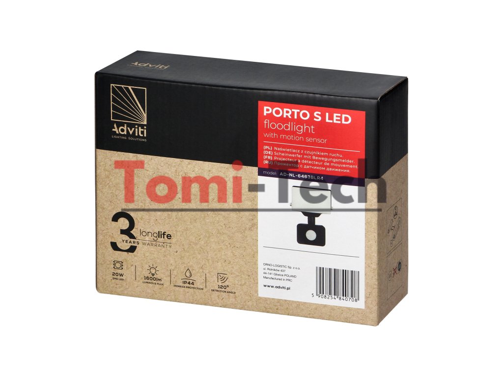 PORTO S LED 20W reflektor s PIR, 1600lm, IP44, 4000K, hliník + polykarbonátDodatočné parametre