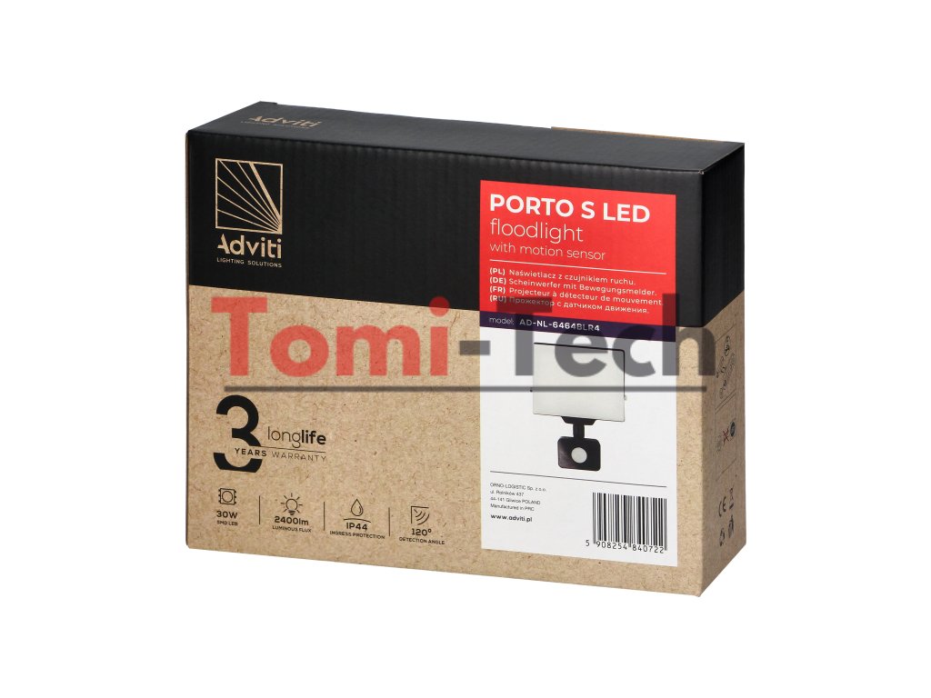 PORTO S LED 30W reflektor s PIR, 2400lm, IP44, 4000K, hliník + polykarbonát