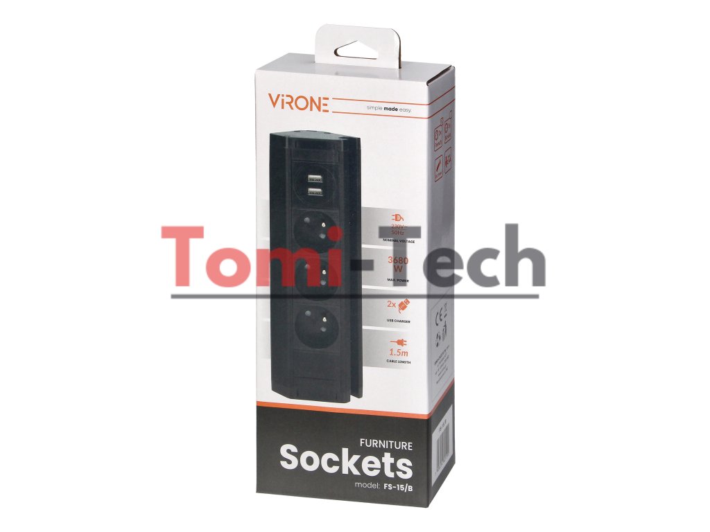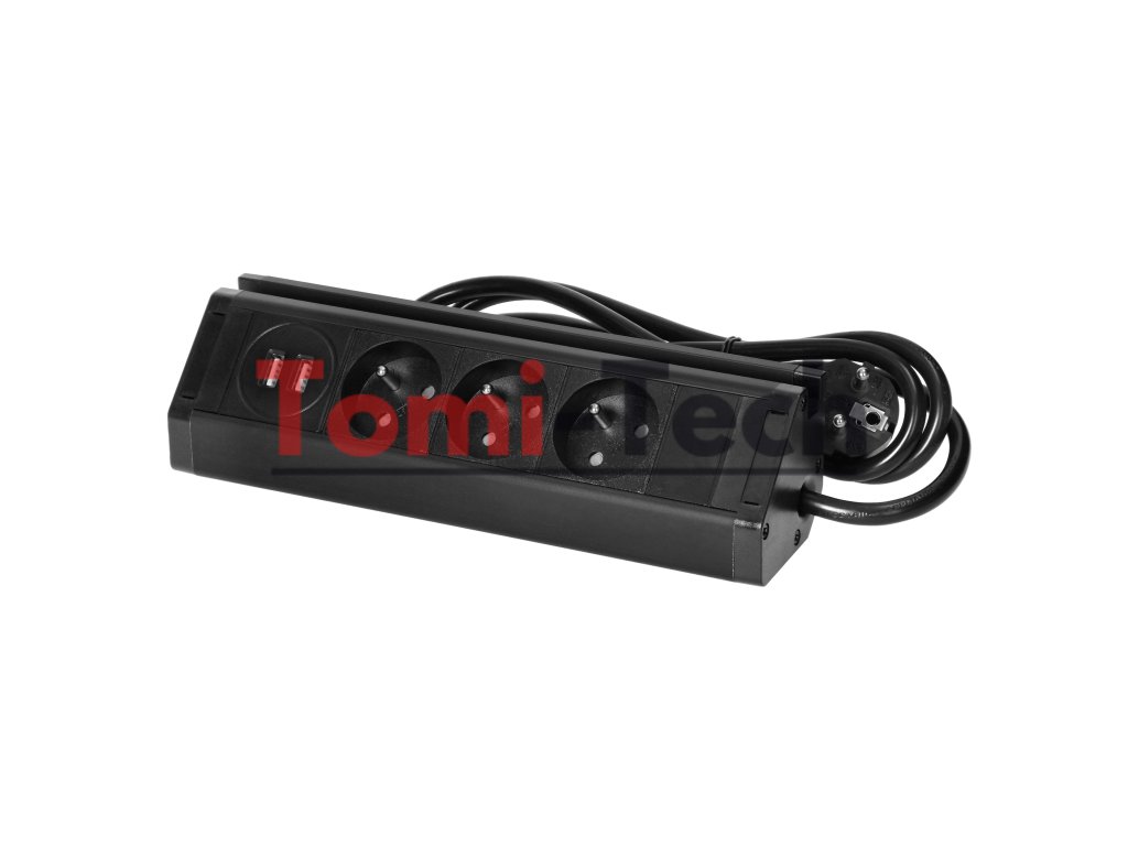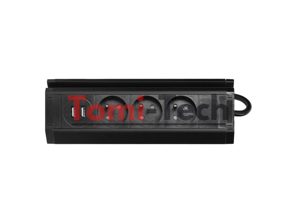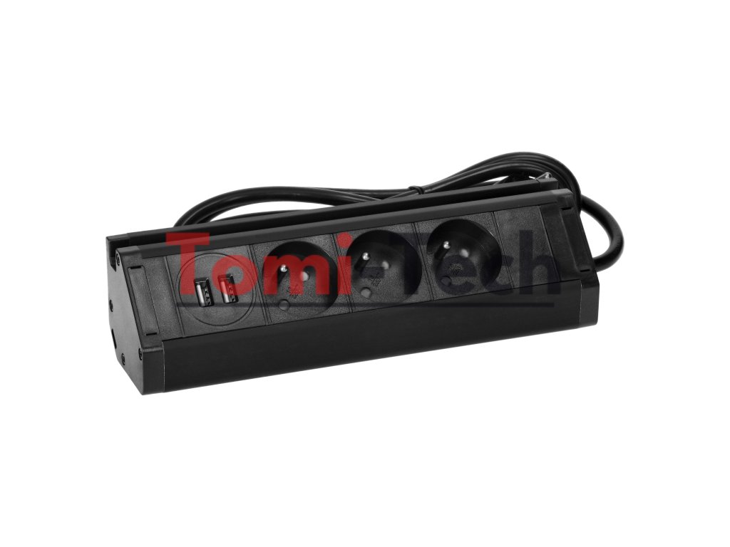 Trojitá nábytková zásuvka s držiakom na telefón, USB nabíjačkou a 1,5 m káblom, 3x2P+Z, 2xUSB (typ A, 2,4 A), čiernaDodatočné parametre