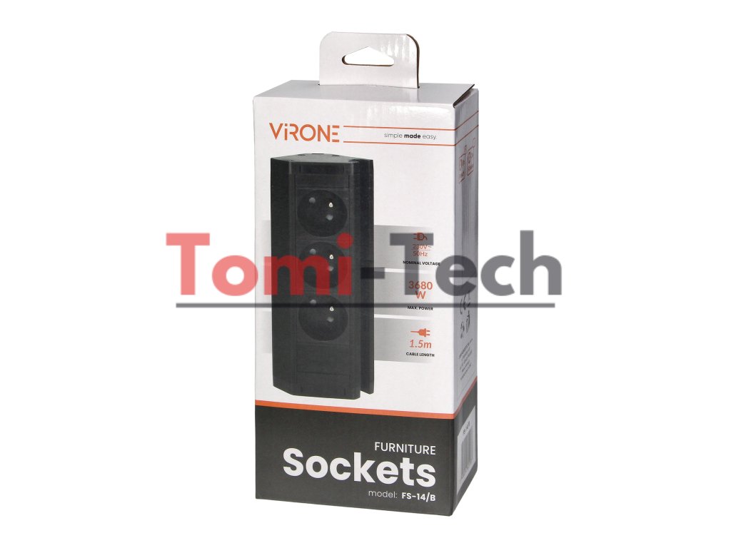 Trojitá nábytková zásuvka s držiakom na telefón a 1,5 m káblom, 3x2P+Z, čiernaDodatočné parametre