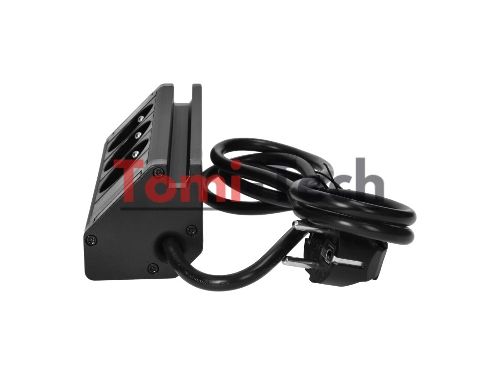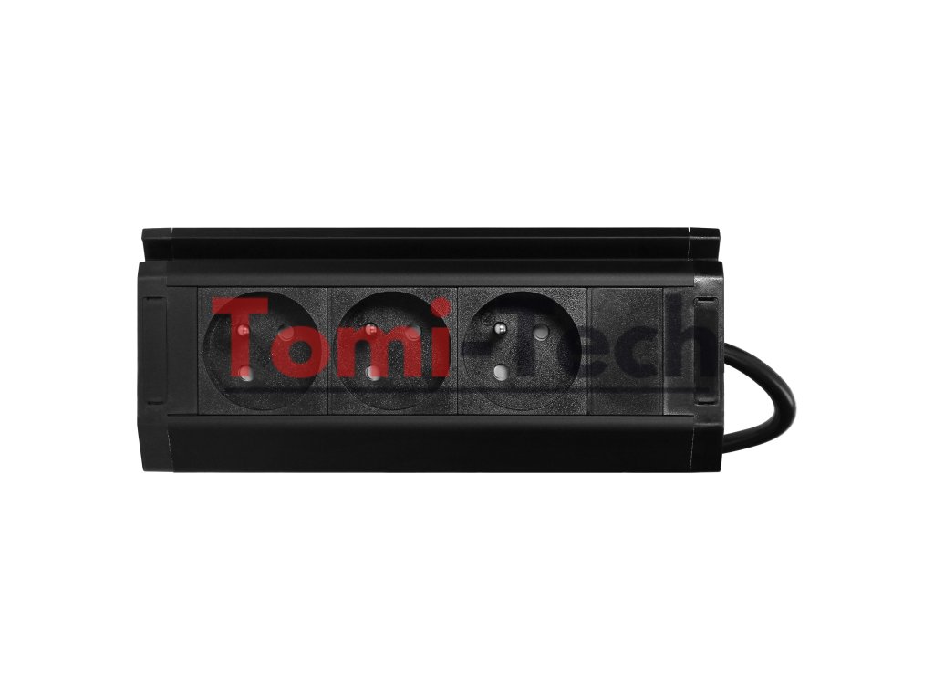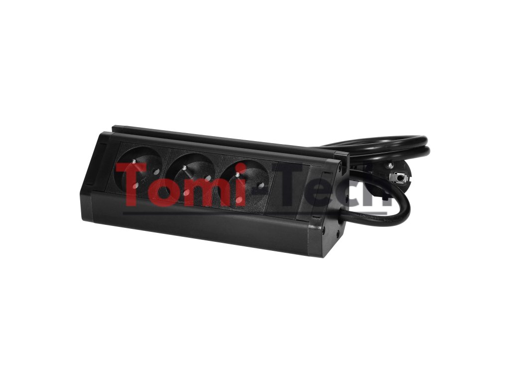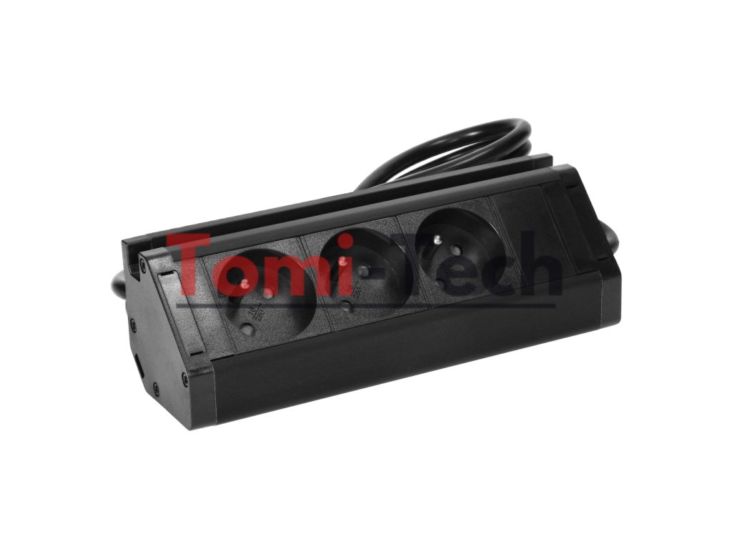 Trojitá nábytková zásuvka s držiakom na telefón a 1,5 m káblom, 3x2P+Z, čierna