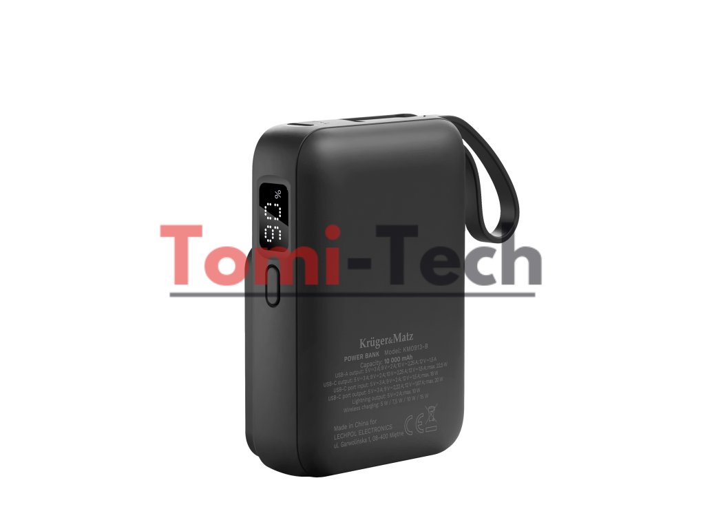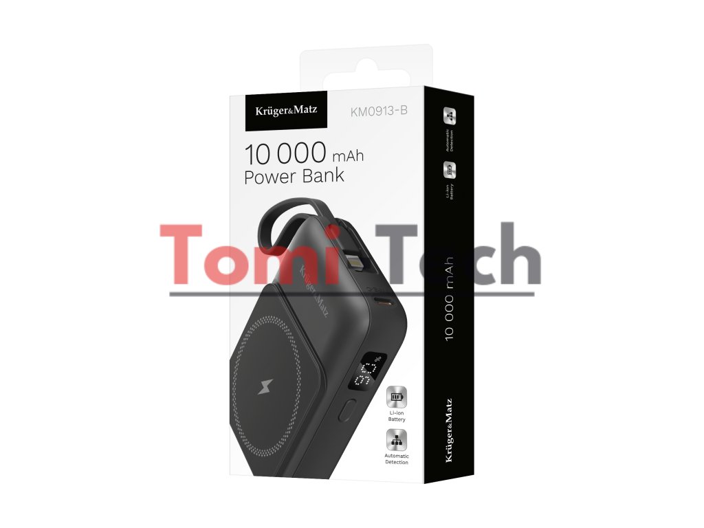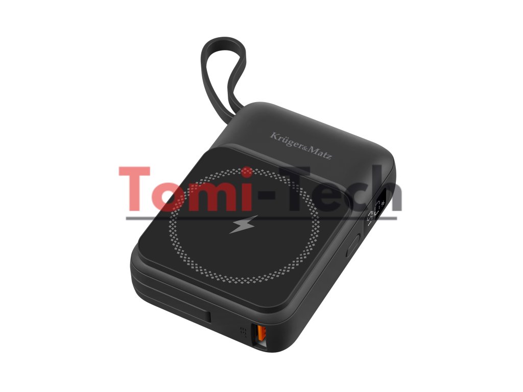 Kruger&Matz 10000 mAh Mag Safe indukčná POWERBANK s káblom, čierna
