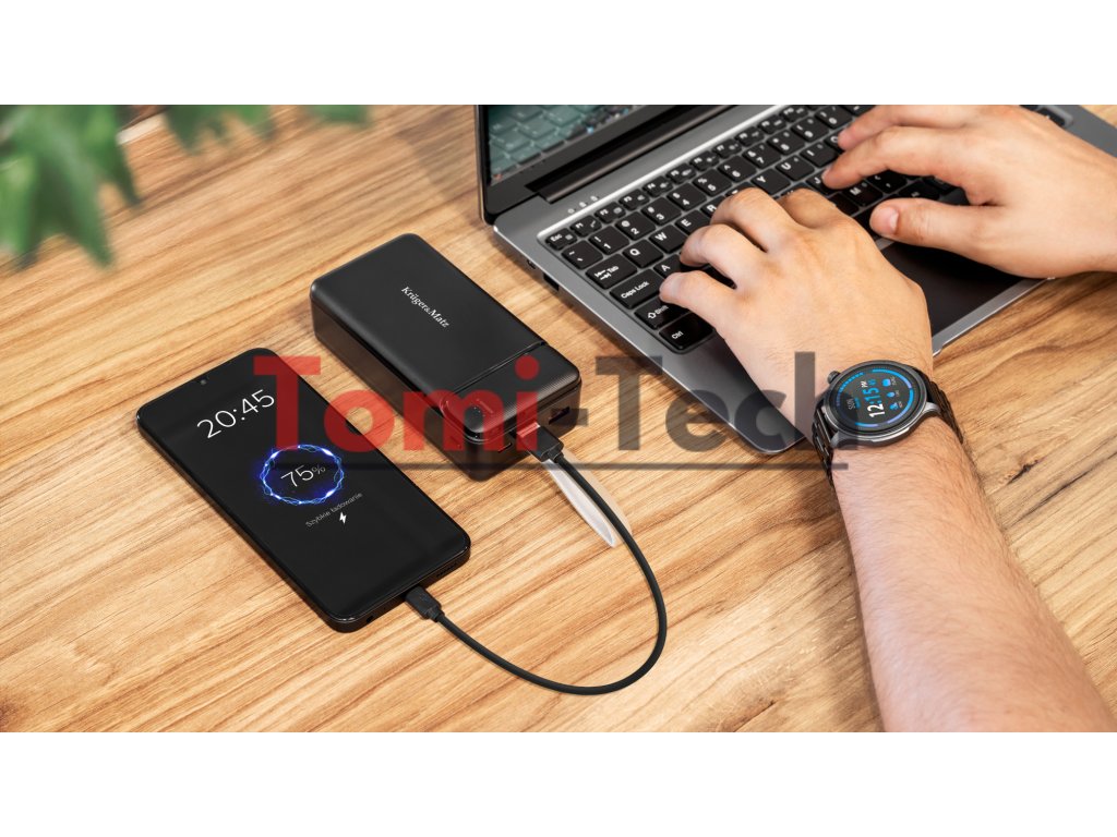 Powerbanka Kruger&Matz, vybavená technológiami rýchleho nabíjania Quick Charge (QC) a Power Delivery (PD), ponúka okamžité doplnenie energie pre nabíjané zariadenia aj pre samotnú powerbanku. Port USB-C umožňuje rýchle nabíjanie s výkonom až 20 W, zatiaľ čo porty USB-A poskytujú až 22,5 W. To vám ušetrí čas a vaše zariadenia dostanú späť na plný výkon v rekordnom čase.