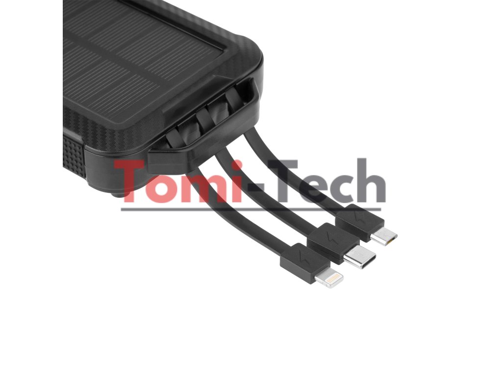 KM0910 je powerbanka so solárnym panelom, čo znamená, že ju môžete používať aj v tých najextrémnejších podmienkach. Zariadenie môžete nabíjať tradične cez port microUSB alebo USB-C, alebo vystavením powerbanky priamemu slnečnému žiareniu. Stav batérie môžete skontrolovať pomocou diód na kryte.