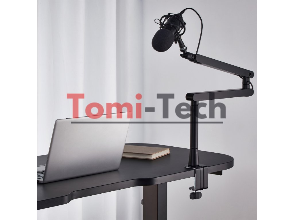 Pohodlný a ľahko použiteľný profesionálny mikrofónový stojan so širokým rozsahom nastavenia a otáčaním o 360 stupňov. Stojan je vhodný ako pre profesionálne štúdiové použitie pri nahrávaní zvuku alebo rozhlasového vysielania, tak aj pre domáce použitie, napríklad streamovanie. Konštrukcia je vyrobená z vysoko kvalitných materiálov, je ľahká, no napriek tomu odolná a má dlhú životnosť. Stojan má maximálnu nosnosť 2 kg.