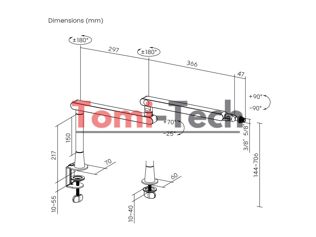Držiak umožňuje montáž na hranu stola aj do otvoru na vedenie káblov. Vďaka univerzálnym 3/8" a 5/8" závitom je držiak kompatibilný s väčšinou štúdiových mikrofónov dostupných na trhu. Integrovaný systém správy káblov zaisťuje poriadok a zlepšuje estetiku.
