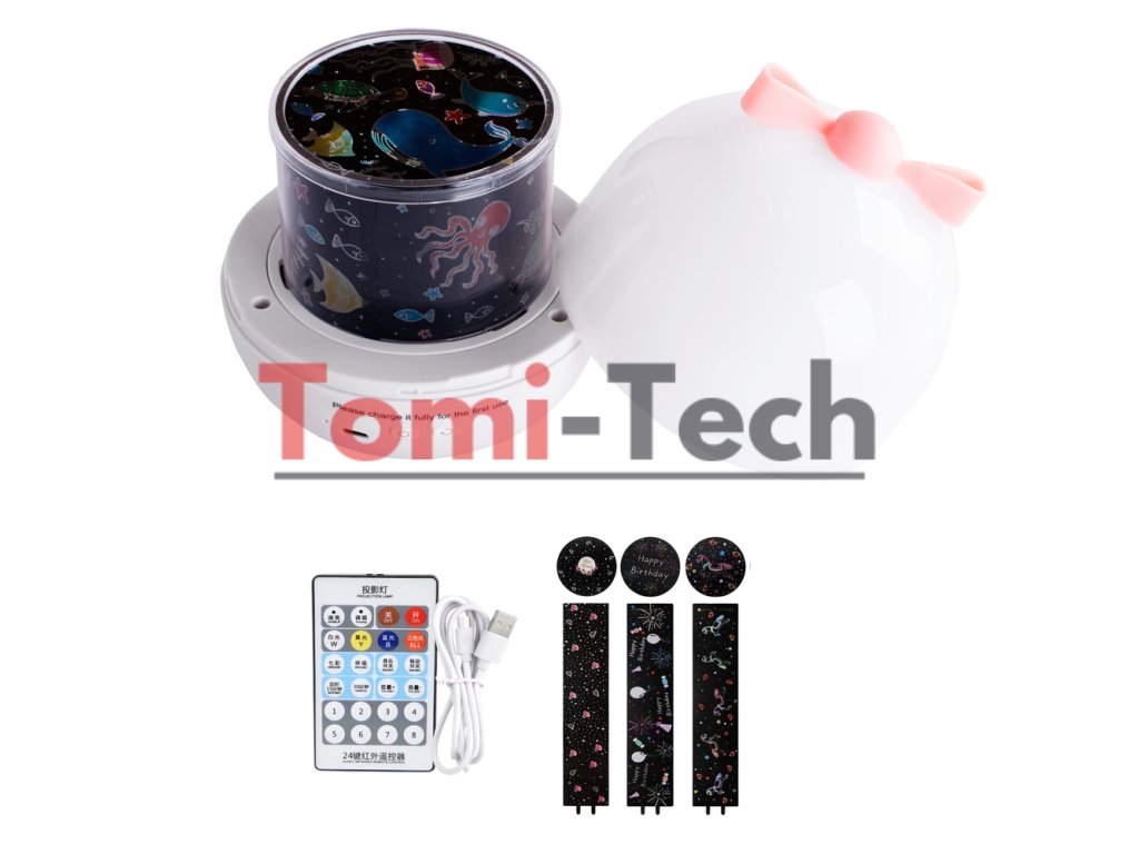 NOČNÁ LAMPA S PROJEKTOROM SO 6 VYMENITEĽNÝMI SCÉNAMI