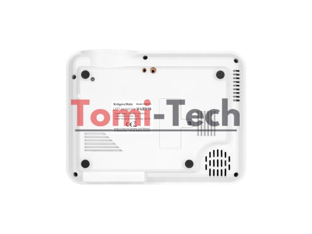 Nemáte miesto na poličke alebo stole? Žiadny problém! Na spodnej strane projektora Kruger&Matz V-LED10 nájdete dva závity, ktoré umožňujú pripevniť projektor na statív alebo držiak.