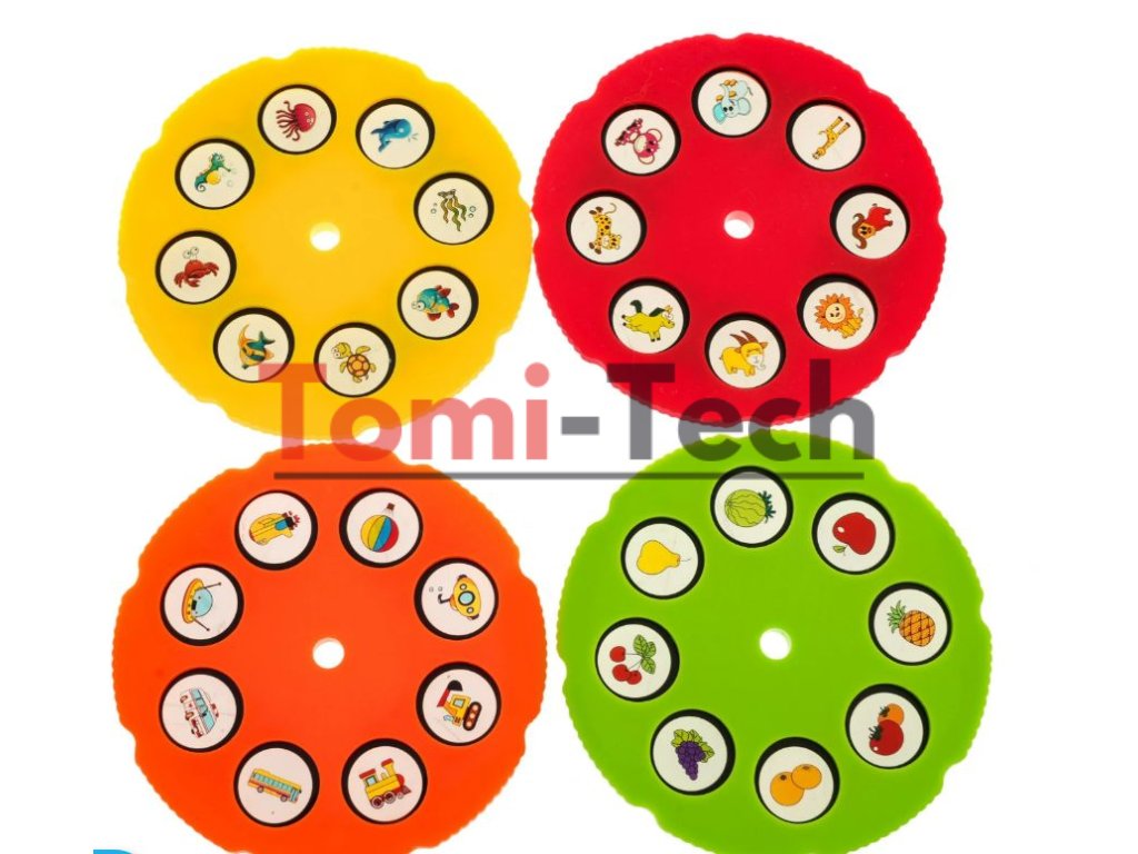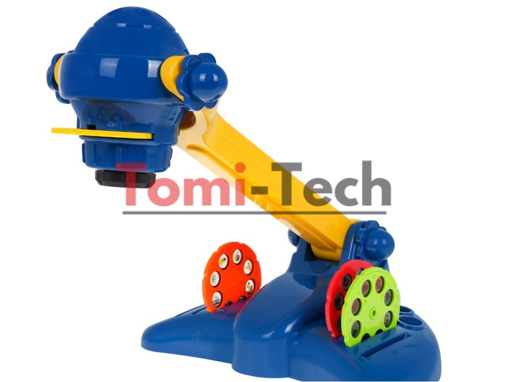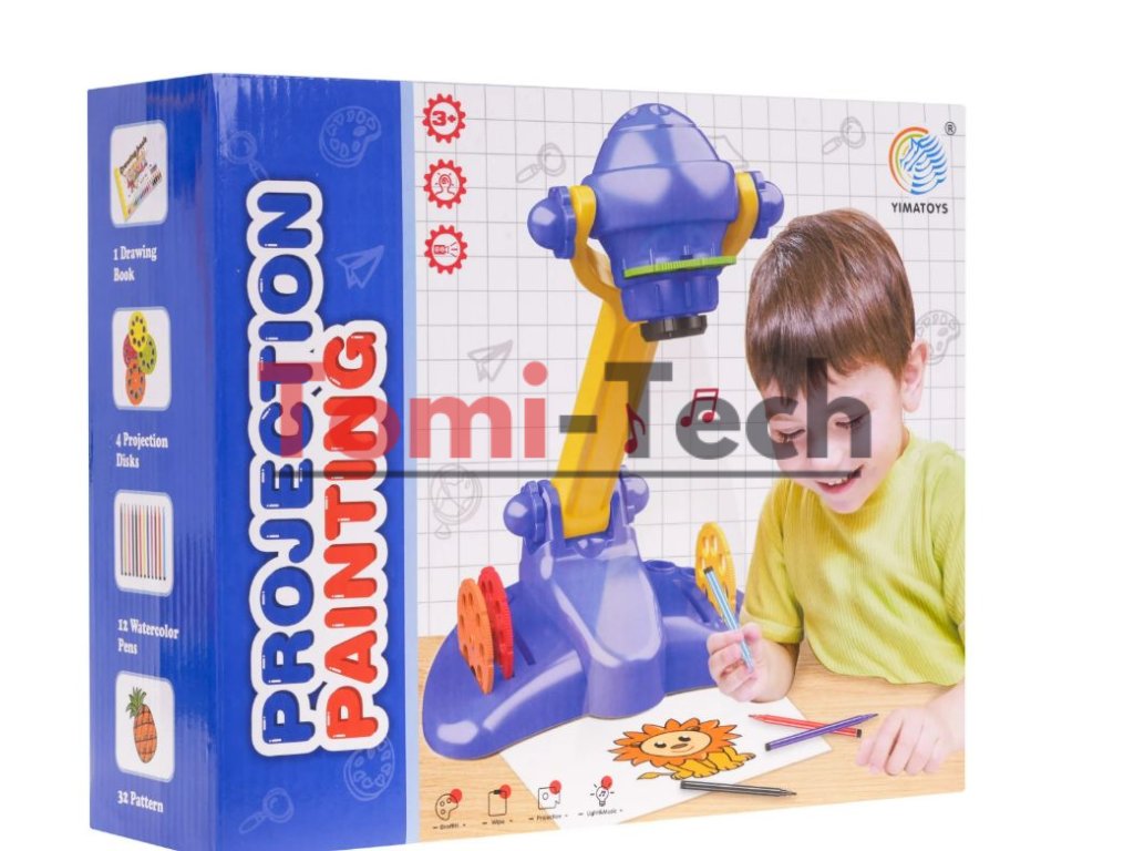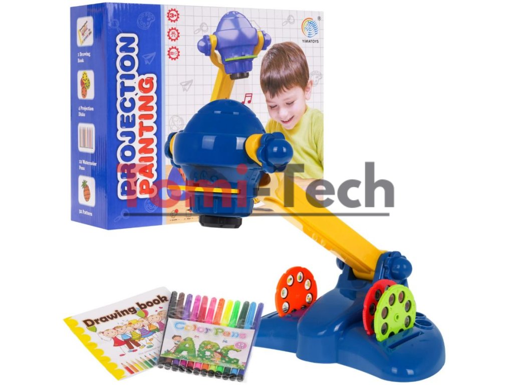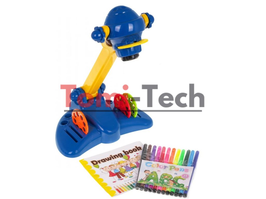 Projektor na kreslenie so zvukovými a svetelnými efektmi. Sada obsahuje až 8 diapozitívov na každom zo 4 diskov s obrázkami zobrazujúcimi ovocie, vozidlá, morské a suchozemské zvieratá. Projektor na kreslenie má pohyblivú hlavu (hore a dole) a nastavenie ostrosti obrazu sa nachádza pod hlavou. Hračka sa veľmi ľahko používa, stačí ju zapnúť v hornej časti a vložiť disk s obrázkami a objavia sa farebné sklíčka. Sklíčka je možné v zápisníku sledovať pomocou fixiek, ktoré sú súčasťou súpravy. Projektor môže pracovať v tichom režime so zvukmi alebo bez nich.