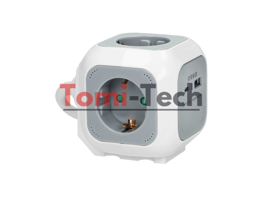 Predlžovací kábel 4x2P+Z (Schuko), USB nabíjačka A+C, Rýchlonabíjanie, 1,4 m H05VV-F 3x1,5 mm?, sivý