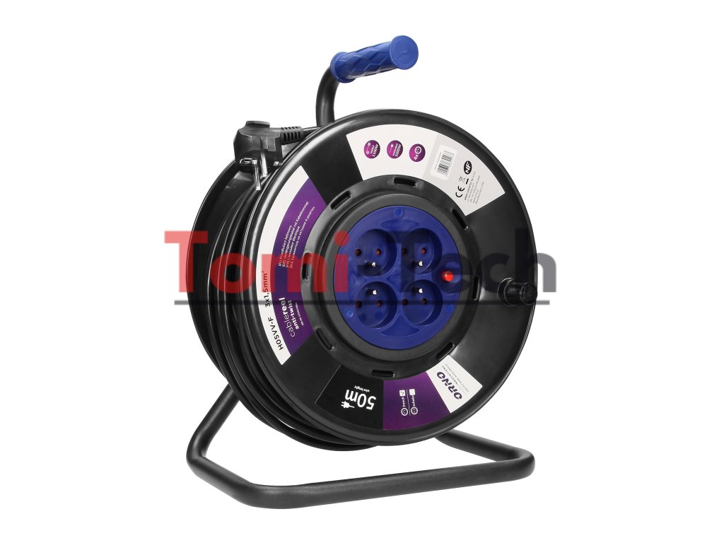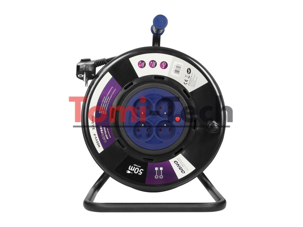 Tento zasúvací predlžovací kábel je vybavený inovatívnym systémom proti pretočeniu (pevné zásuvky) a tepelnou ochranou proti preťaženiu. Obsahuje štyri uzemnené zásuvky s clonami prúdových dráh, pohodlnú gumenú rukoväť na prenášanie, otočnú rukoväť na navíjanie kábla, zámok otáčania cievky a utesnenú zástrčku s krytím IP44. Vhodný do náročných prostredí, ako sú dielne, staveniská a ďalšie.Dodatočné parametre