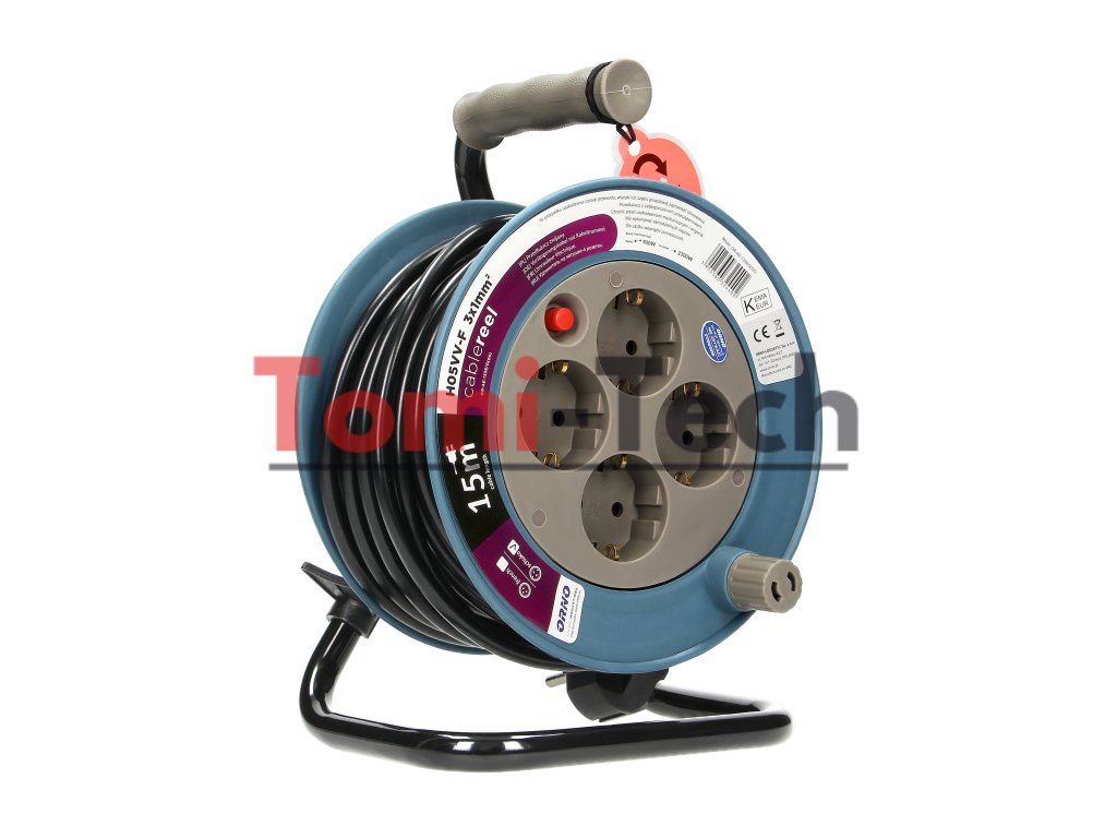Tento navíjací predlžovací kábel má kovový stojan a tepelnú ochranu proti preťaženiu. Obsahuje štyri uzemnené zásuvky s poistkami prúdových dráh, praktickú rukoväť na prenášanie a svorku na zástrčku. Jeho kompaktný dizajn umožňuje pohodlné používanie a skladovanie doma, na záhrade, v kancelárii atď. Je tiež vybavený kľukou na navíjanie kábla a zámkom, ktorý zabraňuje náhodnému odvinutiu. Dostupné farby: sivá, limetkovo zelená a tyrkysová.Dodatočné parametre