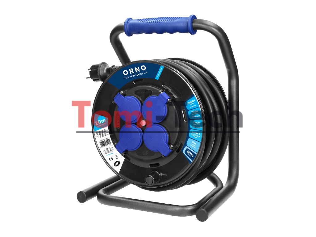 Profesionálny predlžovací kábel s krytím IP44, 4 zásuvky 2P+Z, olejuvzdorný gumový kábel, H07RN-F 3x2,5 mm², dĺžka 20 m, unikátny stojan CUBE, PEVNÉ ZÁSUVKY, tepelné relé proti preťaženiu, clony prúdovej cestyDodatočné parametre