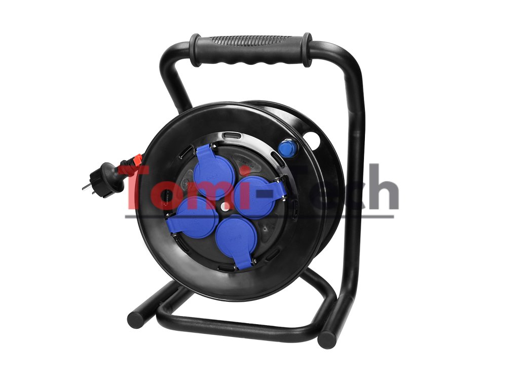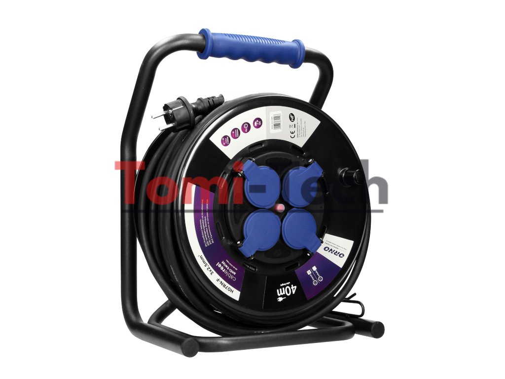 Tento navíjací predlžovací kábel je vybavený inovatívnym systémom proti pretočeniu (pevné zásuvky), unikátnym kovovým stojanom CUBE a tepelnou ochranou proti preťaženiu. 40 m gumový kábel H07RN-F odolný voči oleju má štyri uzemnené zásuvky s krytmi prúdových dráh a tesniacimi krytmi na ochranu pred nečistotami a vlhkosťou. Je tiež vybavený pohodlnou gumenou rukoväťou na prenášanie, otočnou rukoväťou na navíjanie kábla, zámkom otáčania bubna a utesnenou zástrčkou s krytím IP44. Vhodný do náročných vonkajších podmienok.Dodatočné parametre