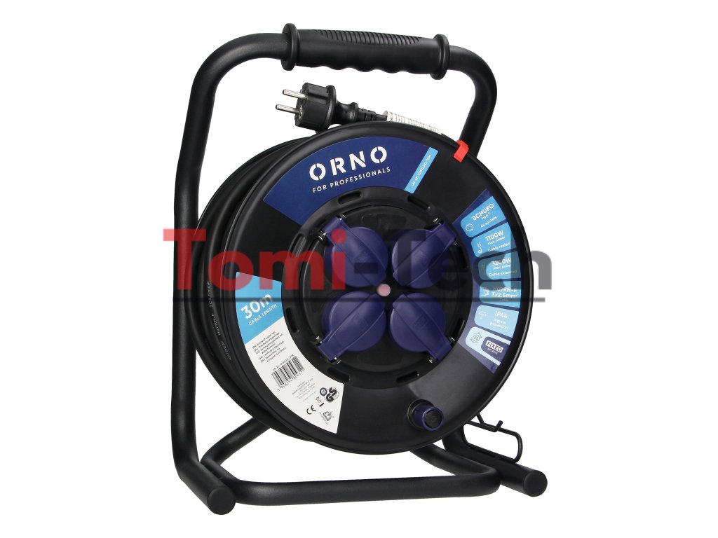 Profesionálny predlžovací kábel s krytím IP44, 4 zásuvky 2P+Z (schuko), olejuvzdorný gumový kábel, H07RN-F 3x2,5 mm², dĺžka 30 m, unikátny stojan CUBE, PEVNÉ ZÁSUVKY, tepelná ochrana proti preťaženiu, clony prúdových dráh.