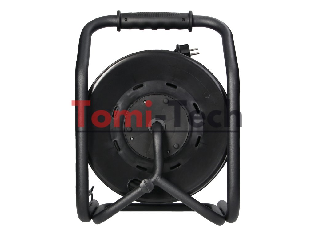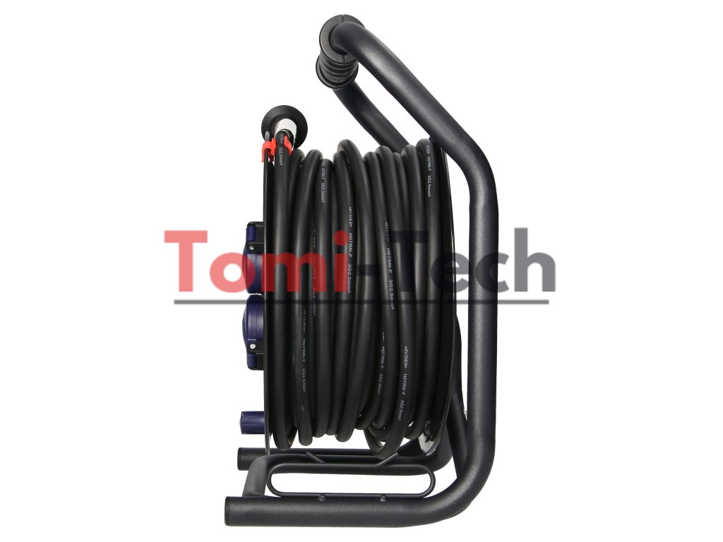 Tento navíjací predlžovací kábel je vybavený inovatívnym systémom proti pretočeniu (pevné zásuvky), unikátnym kovovým stojanom CUBE a tepelnou ochranou proti preťaženiu. 30 m gumový kábel H07RN-F odolný voči oleju má štyri uzemnené zásuvky s krytmi prúdových dráh a tesniacimi krytmi na ochranu pred nečistotami a vlhkosťou. Je tiež vybavený pohodlnou gumenou rukoväťou na prenášanie, otočnou rukoväťou na navíjanie kábla, zámkom otáčania cievky a utesnenou zástrčkou s krytím IP44. Vhodný do náročných vonkajších podmienok.Dodatočné parametre