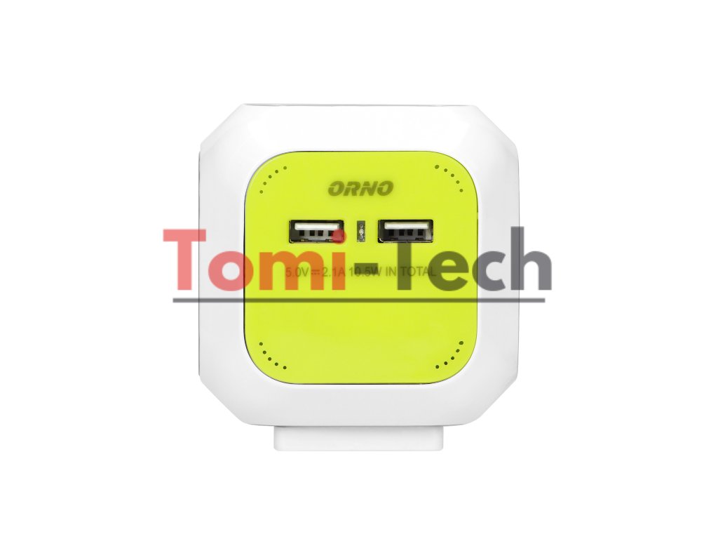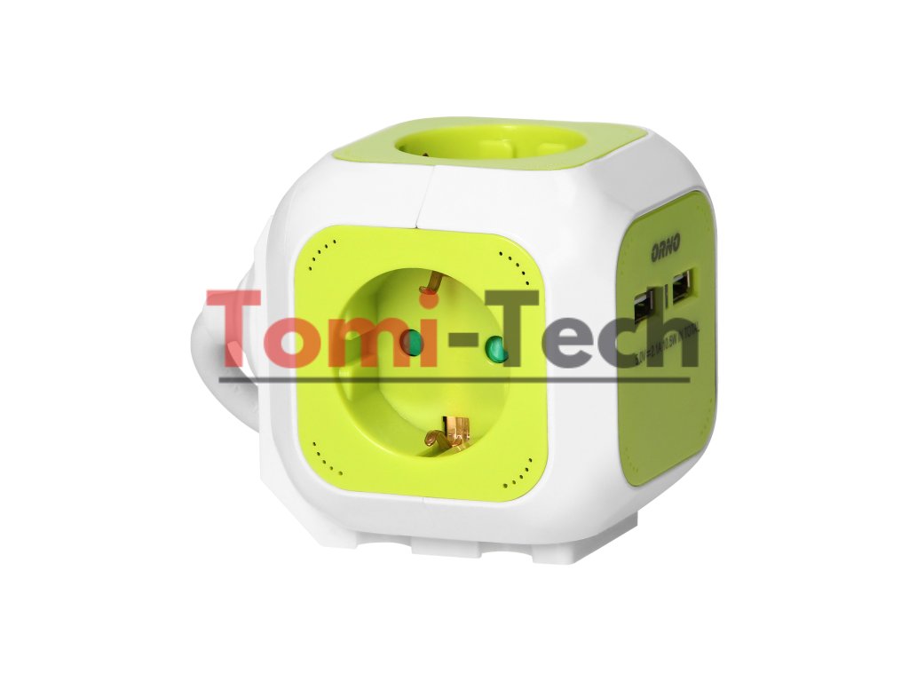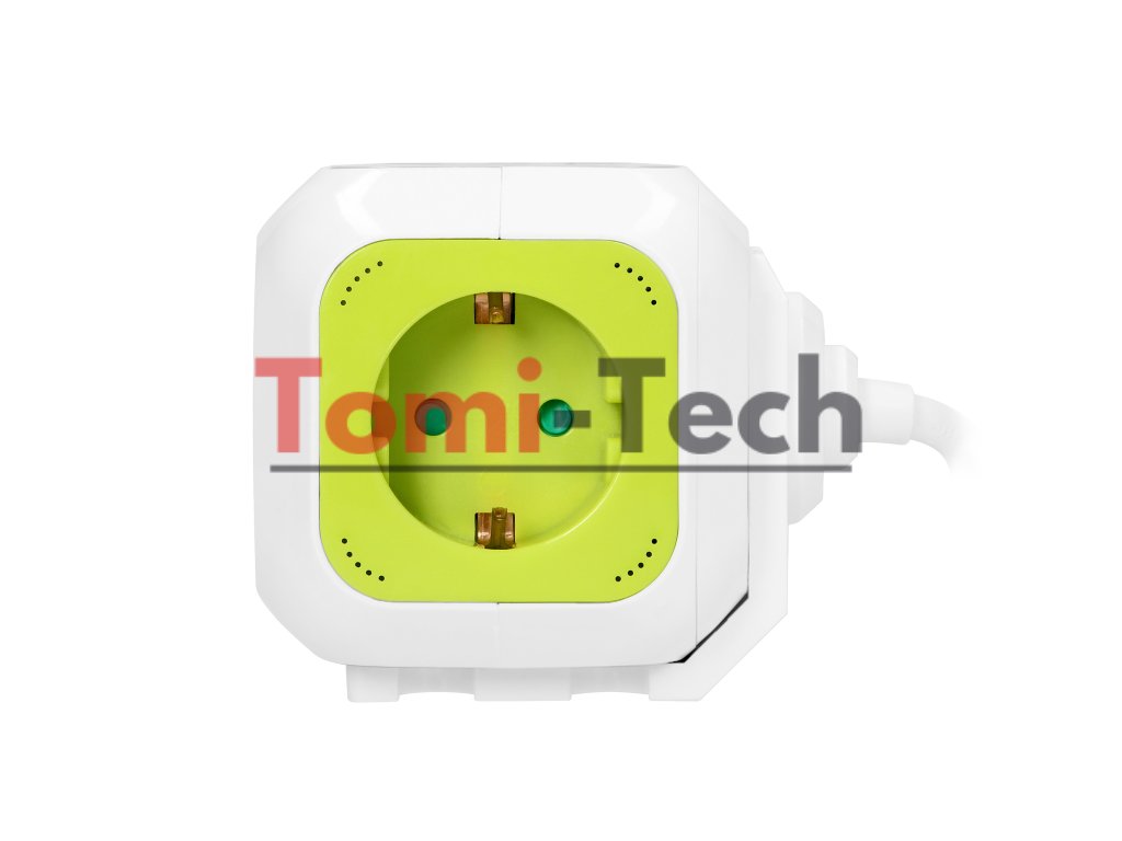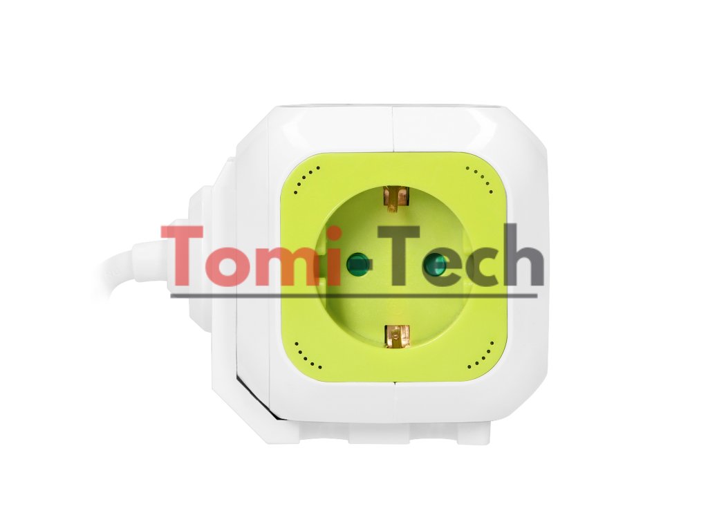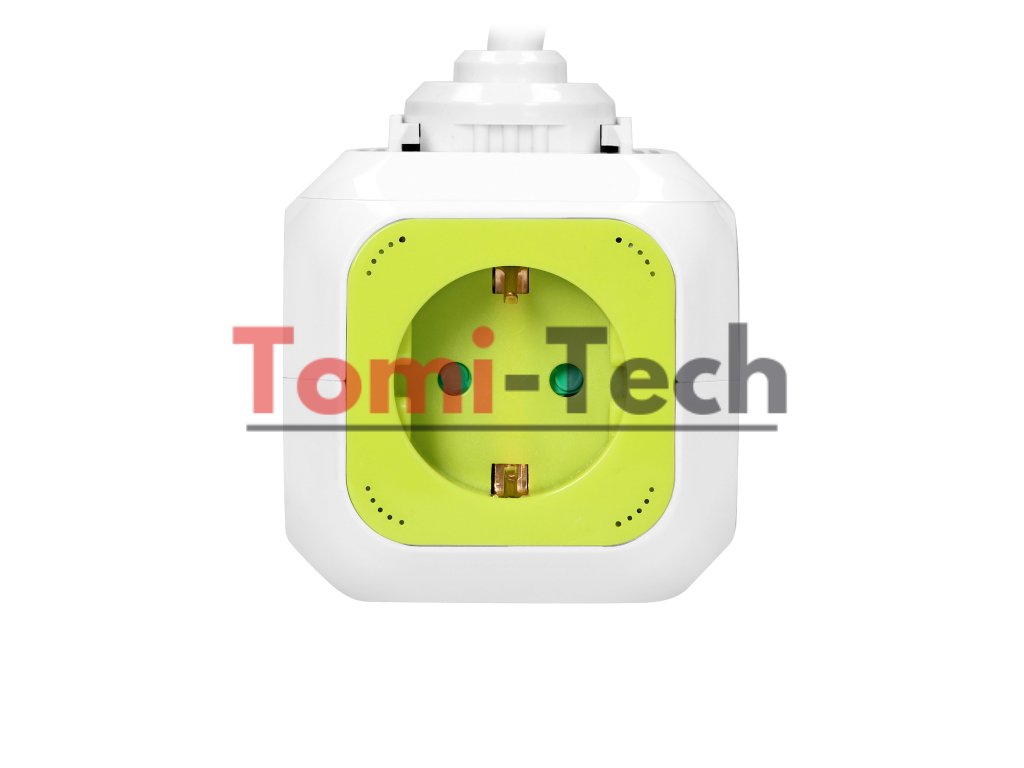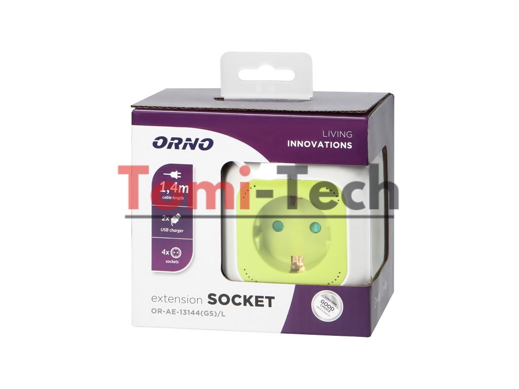 Predlžovací kábel Cube 4-cestný (Schuko) s 2xUSB nabíjačkou 1,4 m limetková