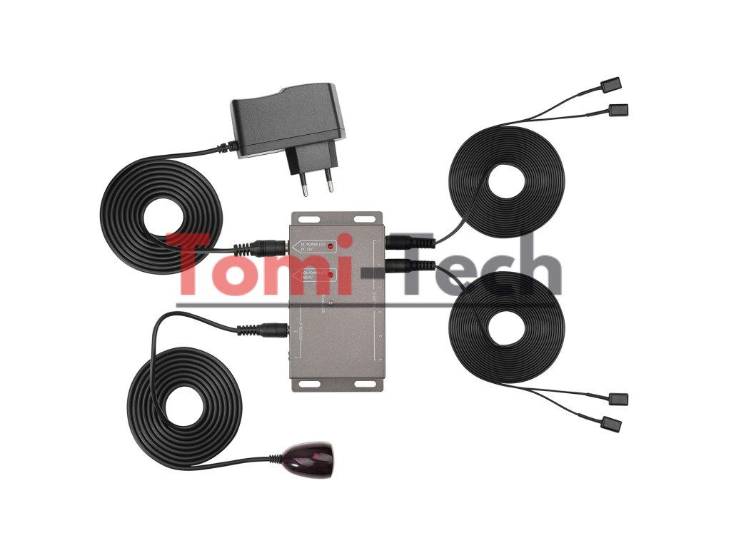 Vďaka tomuto zariadeniu môžete ovládať svoje RTV zariadenia skryté vo vnútri skriniek/nábytku bez toho, aby ste museli otvárať dvierka! IR extender diaľkového ovládania umožňuje zväčšiť dosah diaľkového ovládania, ktoré je účinné iba na krátku vzdialenosť. Vďaka predlžovaču môžete zväčšiť dosah diaľkového ovládača, ako aj uhol vysielaného signálu.