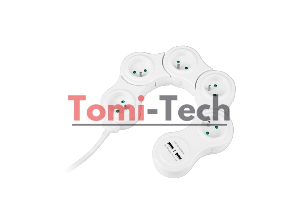 Predlžovací kábel je vybavený piatimi sieťovými zásuvkami, ktoré umožňujú súčasné pripojenie rôznych elektrických zariadení, ako napríklad ako sú počítače, televízory a nabíjačky. Okrem toho dva USB porty s celkovým prúdom 2,4 A umožňujú rýchle nabíjanie mobilných zariadení bez potreby ďalších nabíjačiek.