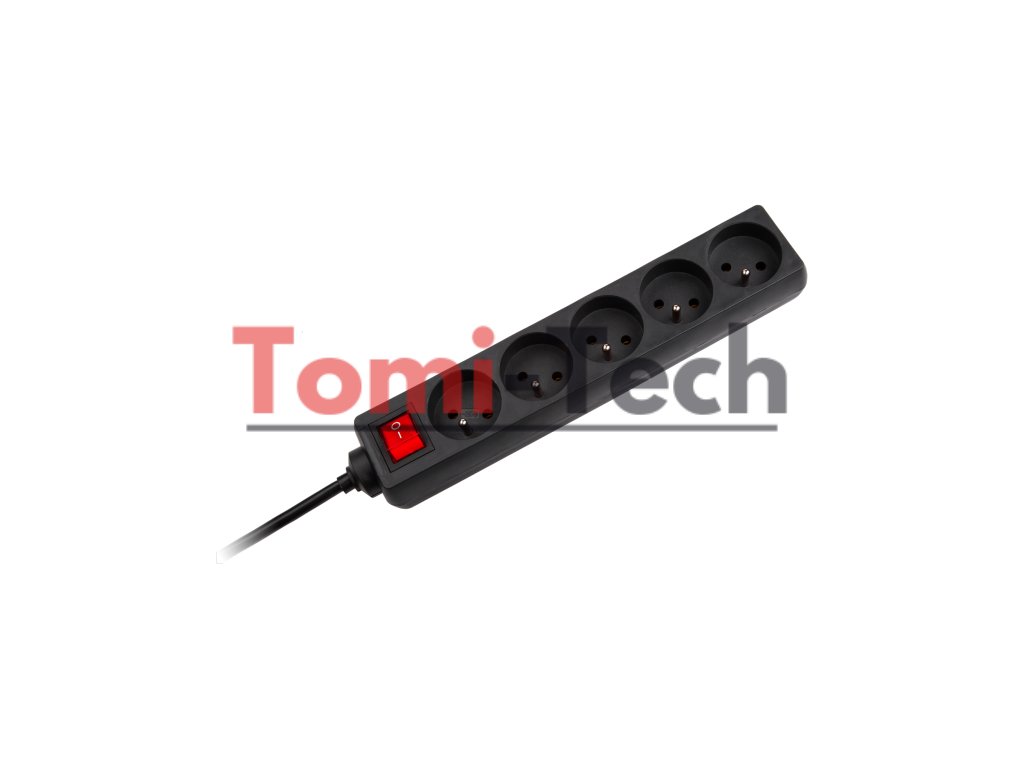 Predlžovací kábel Rebel čierny, 5 zásuviek s vypínačom, dĺžka 1,5 m