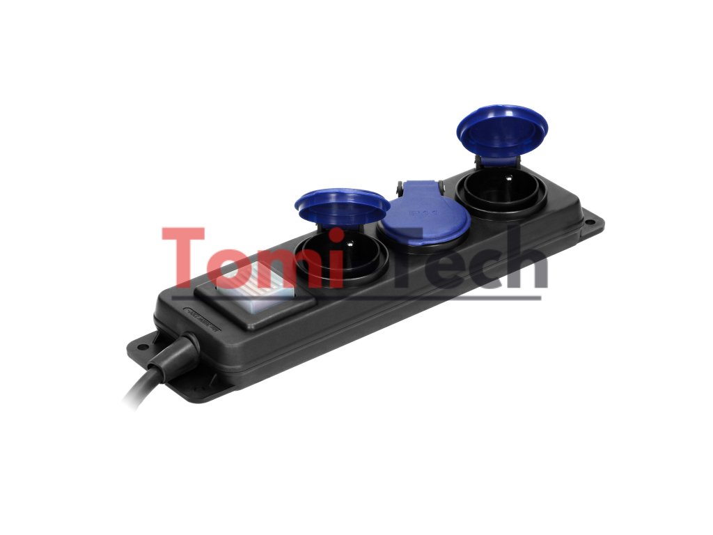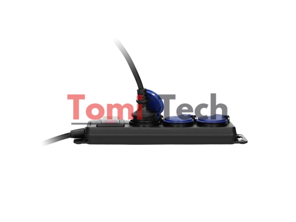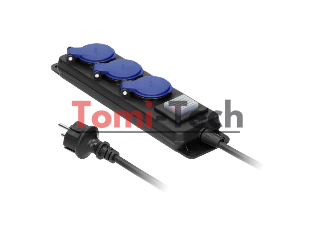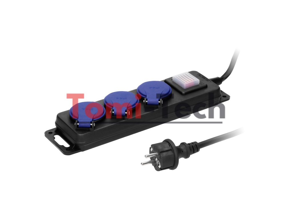 Predlžovací kábel do dielne odolný voči striekajúcej vode s vypínačom IP44, 3 zásuvky 2P+Z IP44, gumený kábel, H05RR-F 3x1,5 mm², dĺžka 3 m